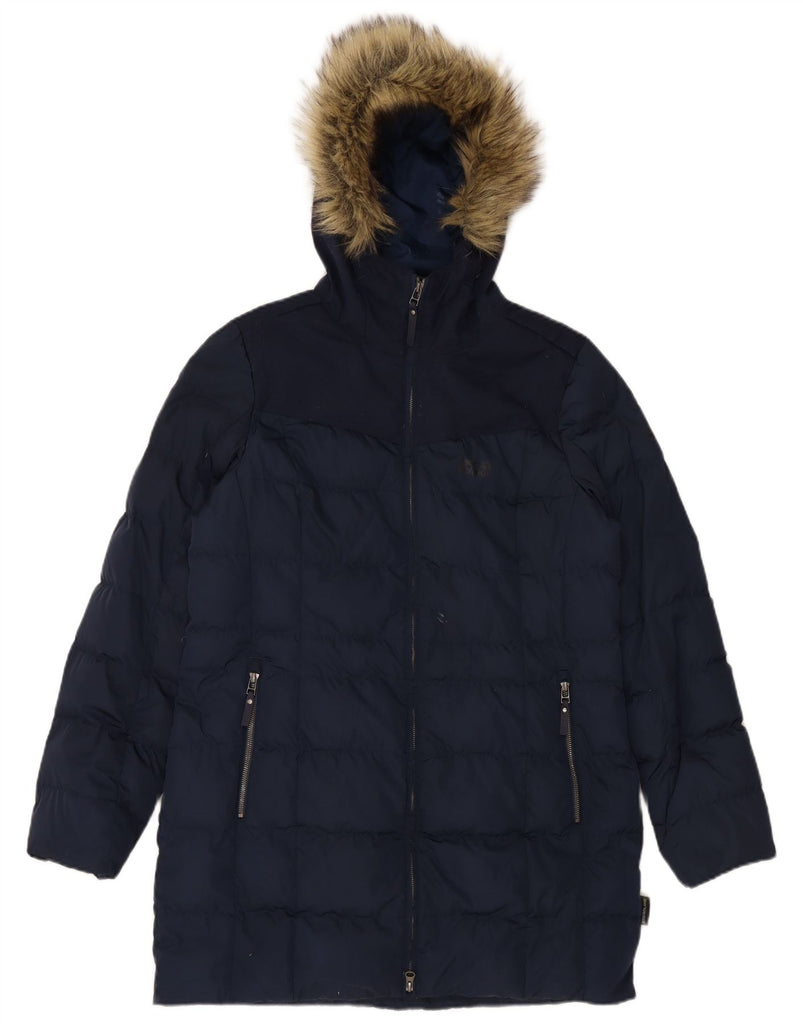 JACK WOLFSKIN Womens Hooded Padded Coat UK 14/16 Large Navy Blue Polyester