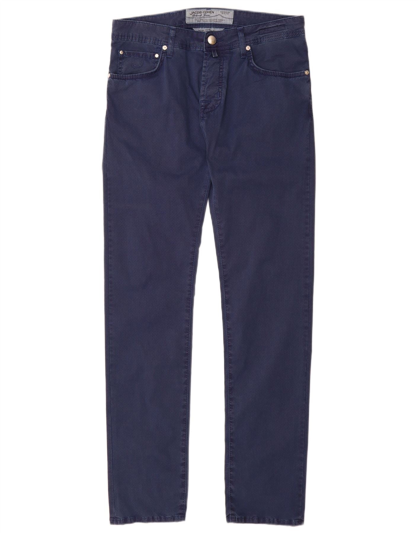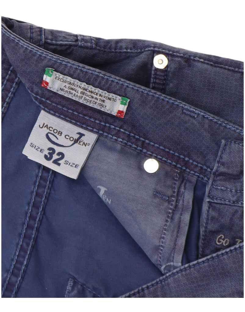 JACOB COHEN Mens Slim Casual Trousers W32 L34 Navy Blue Spotted Cotton