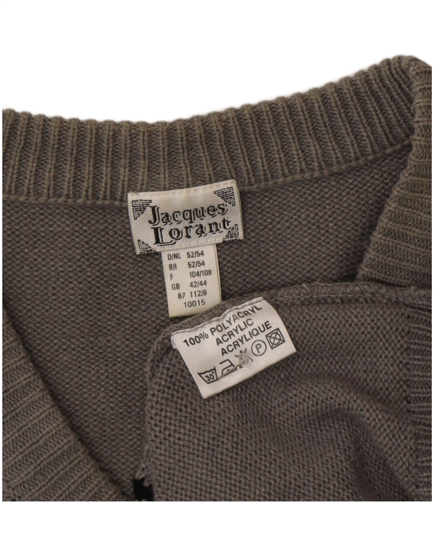 Jacques Lorant Herren-Pullover mit V-Ausschnitt, Gr. 42/44, groß, grau gestreift