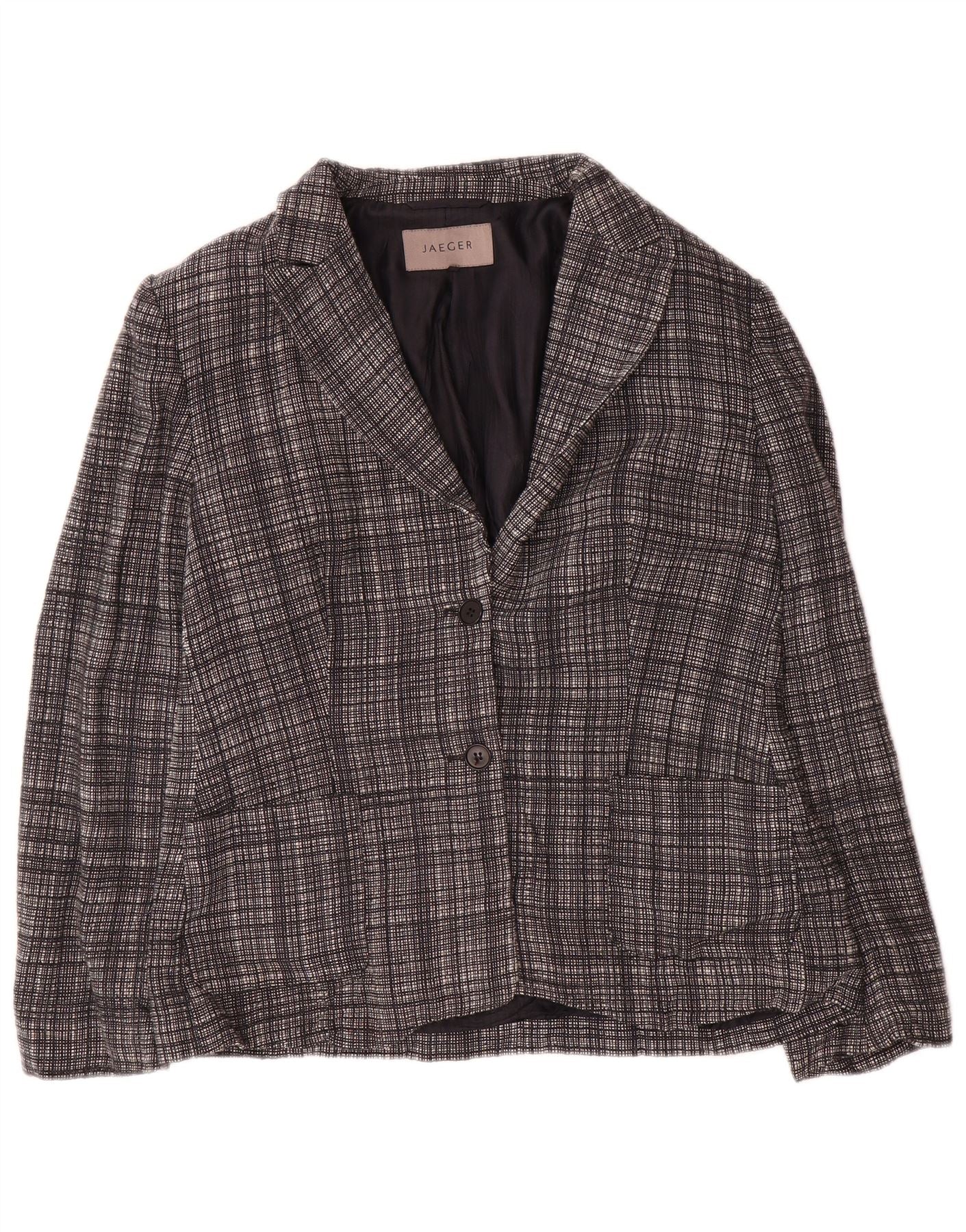 Jaeger Damen-Blazer mit 2 Knöpfen, UK 12, mittelgrau karierte Wolle