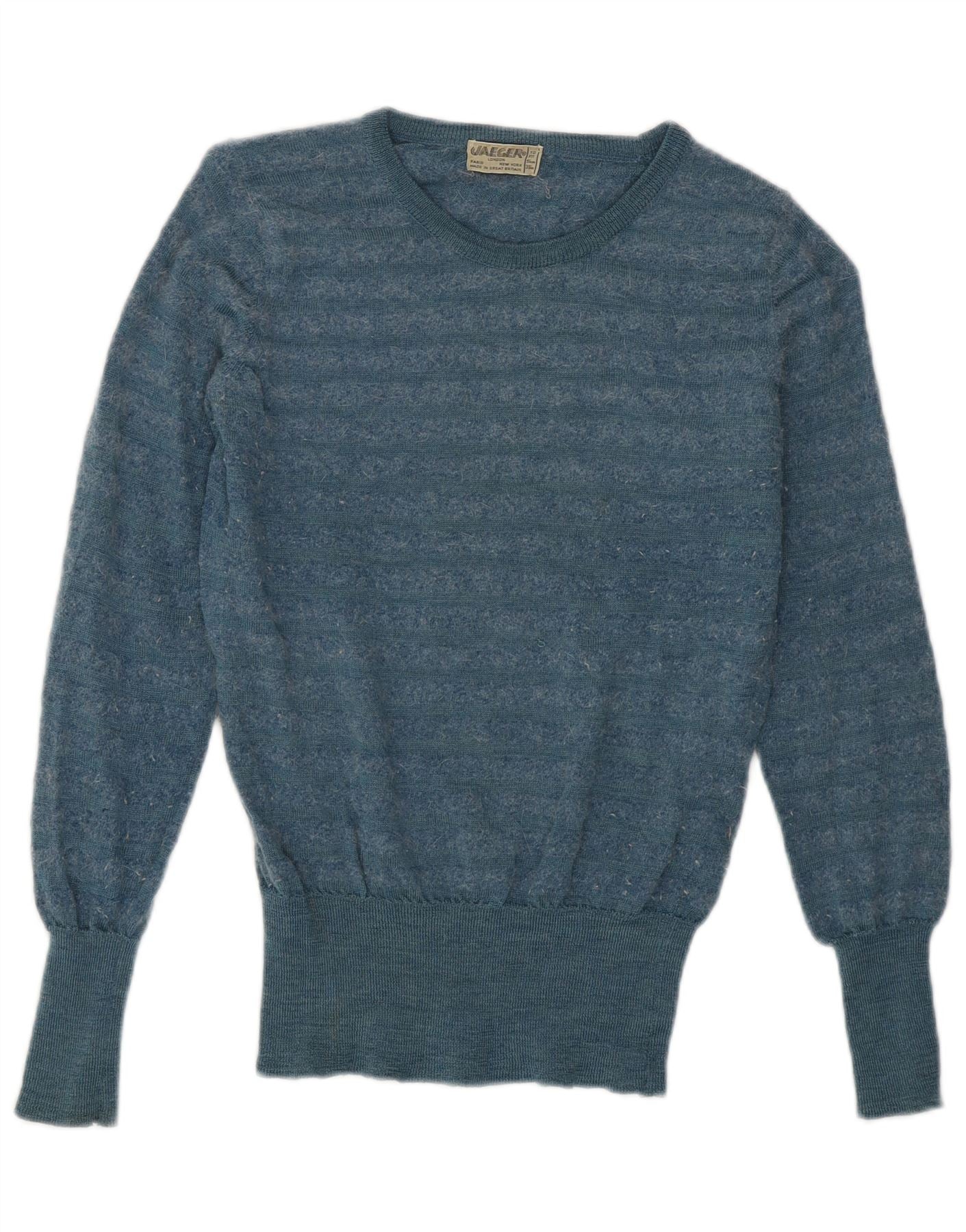 Jaeger Damen-Pullover mit U-Boot-Ausschnitt, Gr. 10, klein, blau gestreift, Wolle