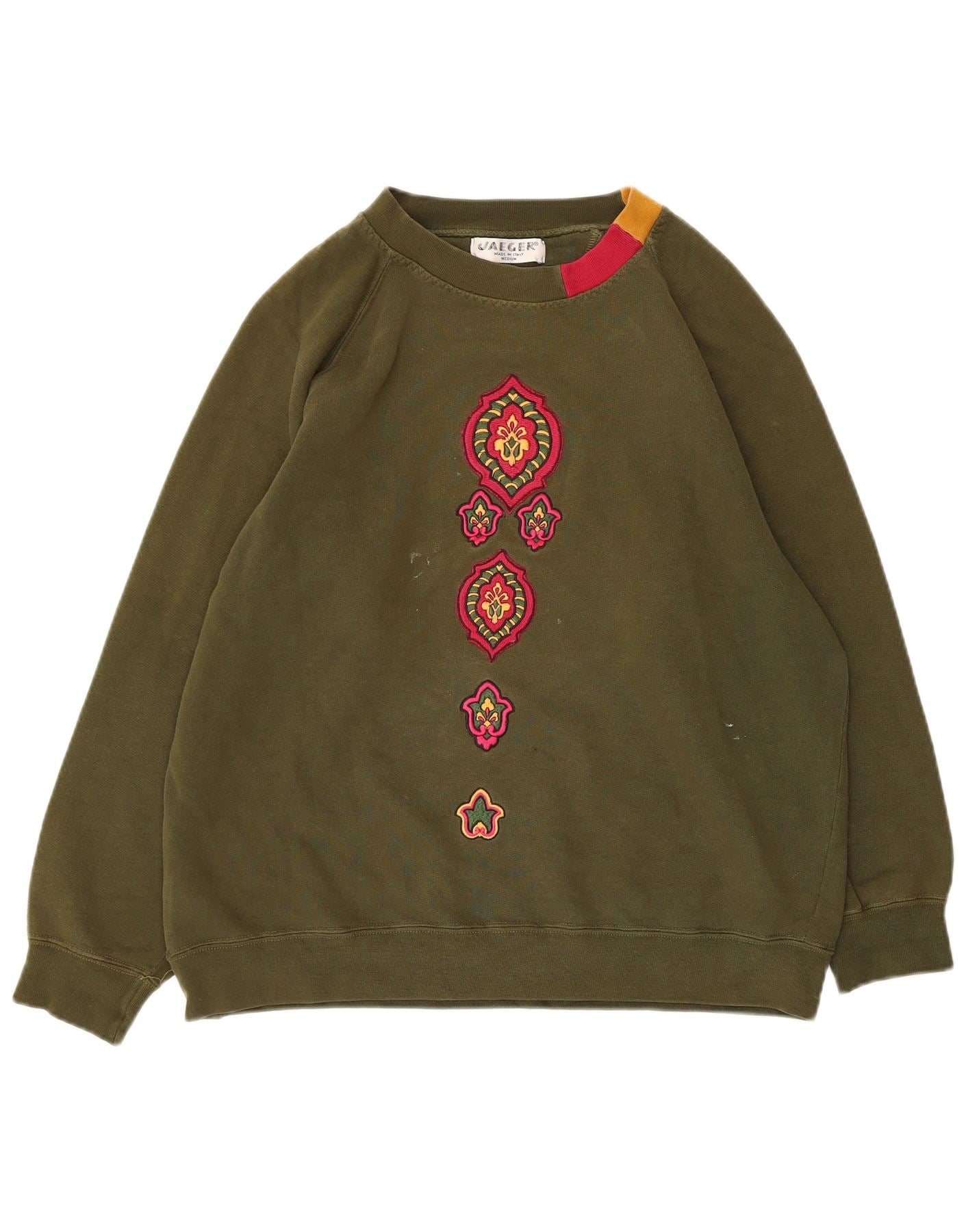 Übergroßer Damen-Sweatshirtpullover von Jaeger, UK 12, mittlere Khaki-Baumwolle mit Blumenmuster