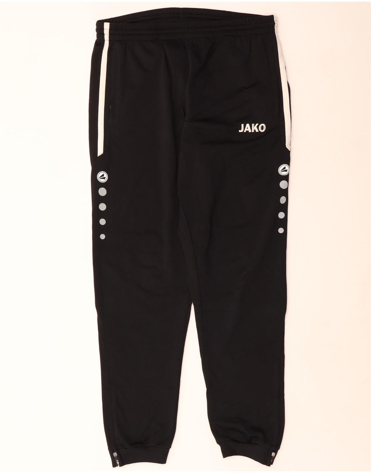 - KI-Beschreibung: Diese Herren-Trainingshose und Jogginghose von Jako ist aus glattem schwarzem Jersey-Stoff gefertigt. Sie verfügen über einen bequemen elastischen Bund mit Pull-on-Design. Die reguläre Passform bietet Bewegungsfreiheit. Reißverschlüsse an den Knöcheln sorgen für verstellbaren Komfort. Seitentaschen sorgen für zusätzliche Funktionalität. Ein weißes Jako-Logo ist prominent angebracht. Weiße Streifendetails verlaufen an den Seiten und unterstreichen die sportliche Ästhetik.