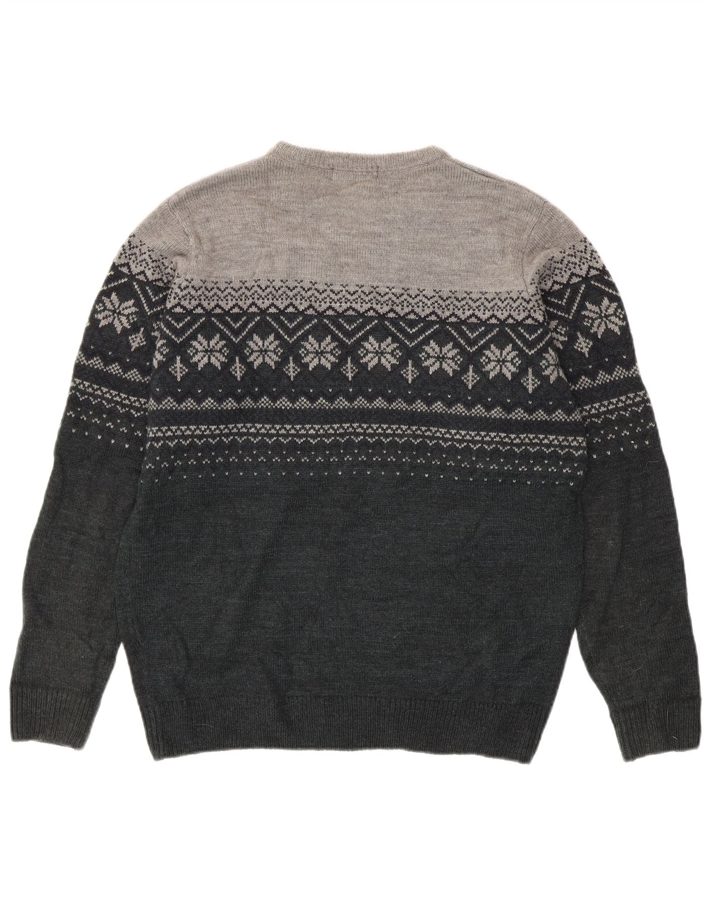 JAMES PRINGLE Herren-Pullover mit U-Boot-Ausschnitt, Mittelgrau, Fair-Isle-Acryl