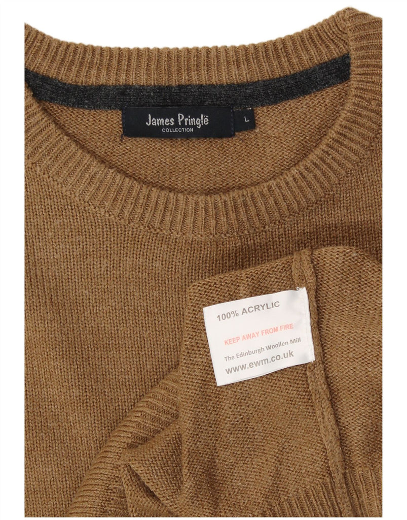 JAMES PRINGLE Mens Crew Neck Jumper Sweater Large Brown Acrylic
