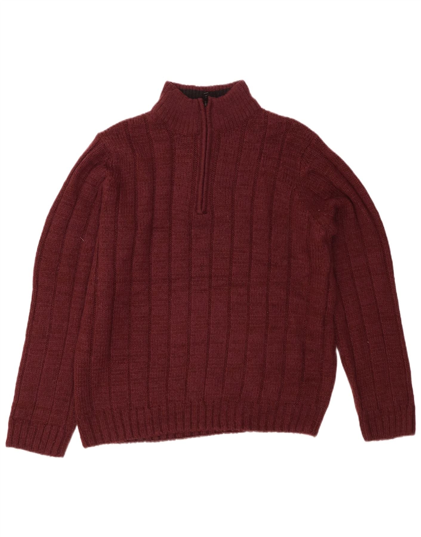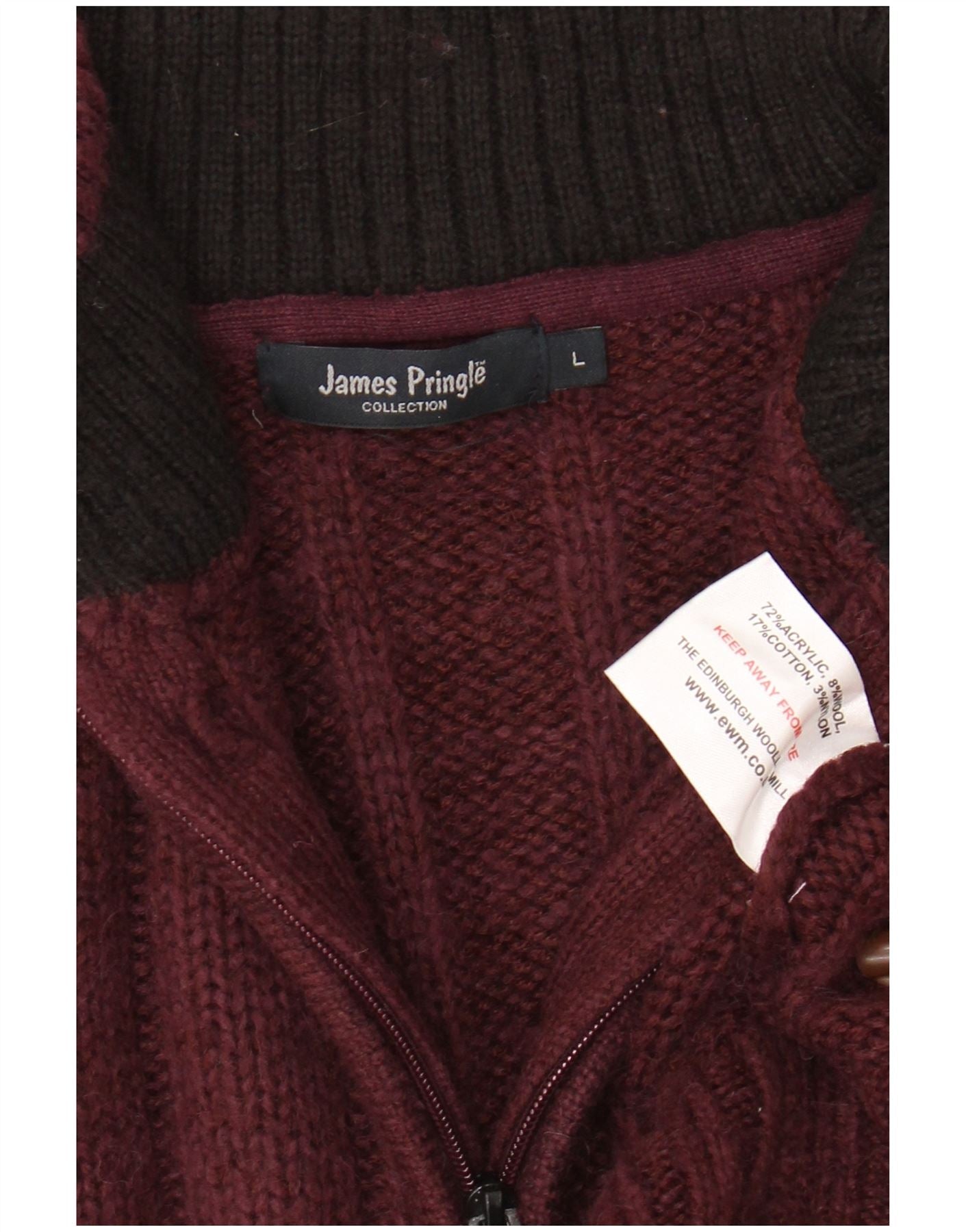 JAMES PRINGLE Mens Zip Neck Jumper Sweater Large Maroon Acrylic