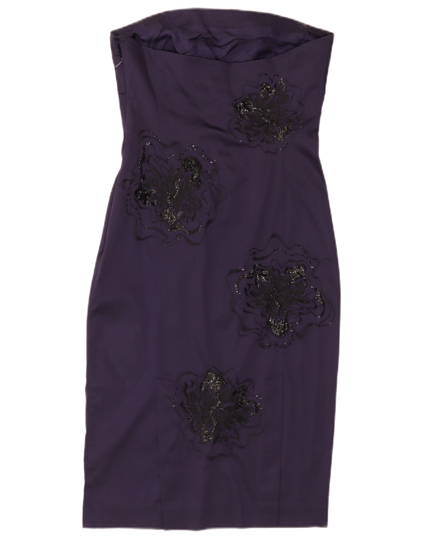 JANE NORMAN Trägerloses, figurbetontes Damenkleid UK 12 Mittellila mit Blumenmuster