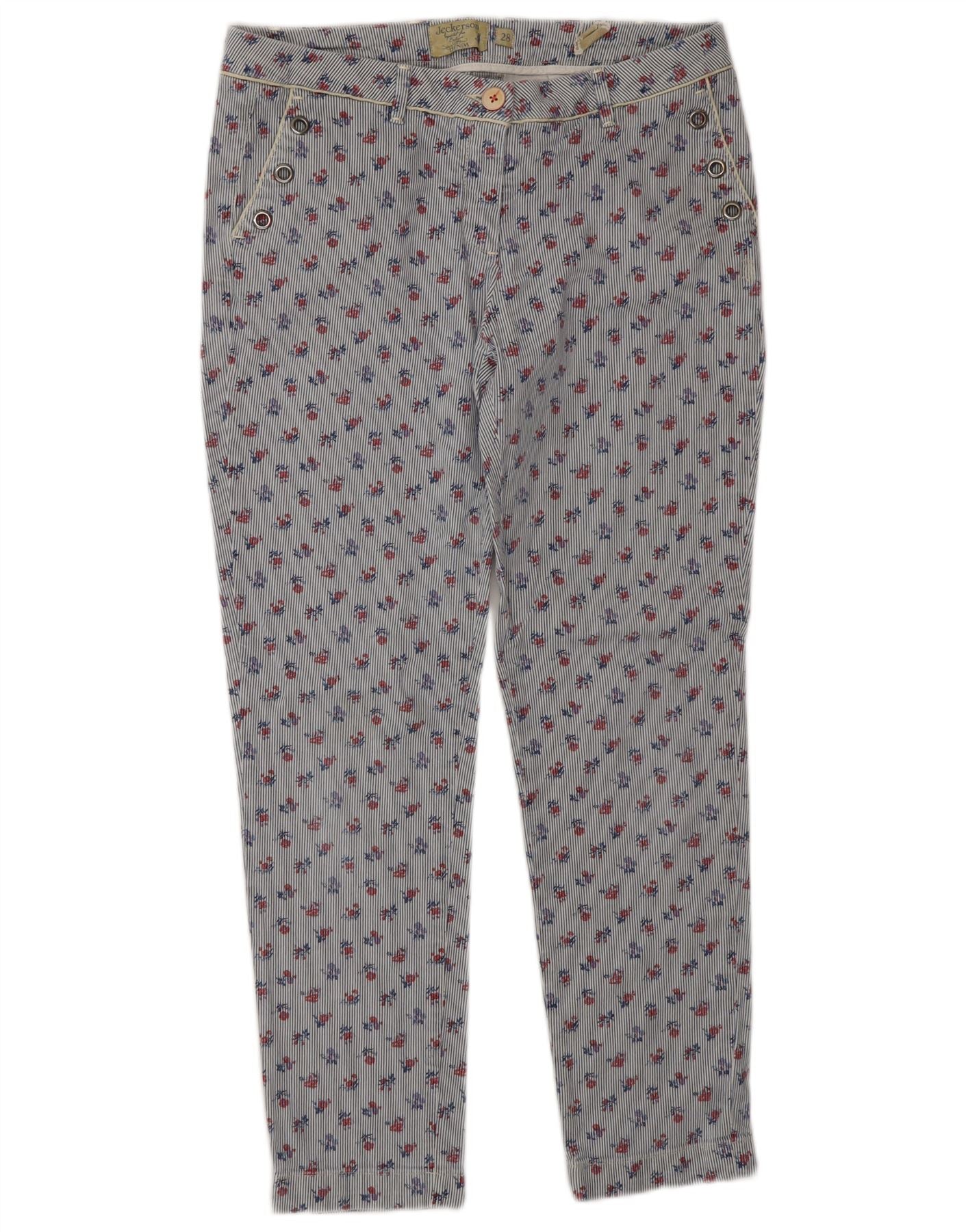 JECKERSON Womens Jade Slim Chino Trousers W28 L26 Blue Floral Cotton