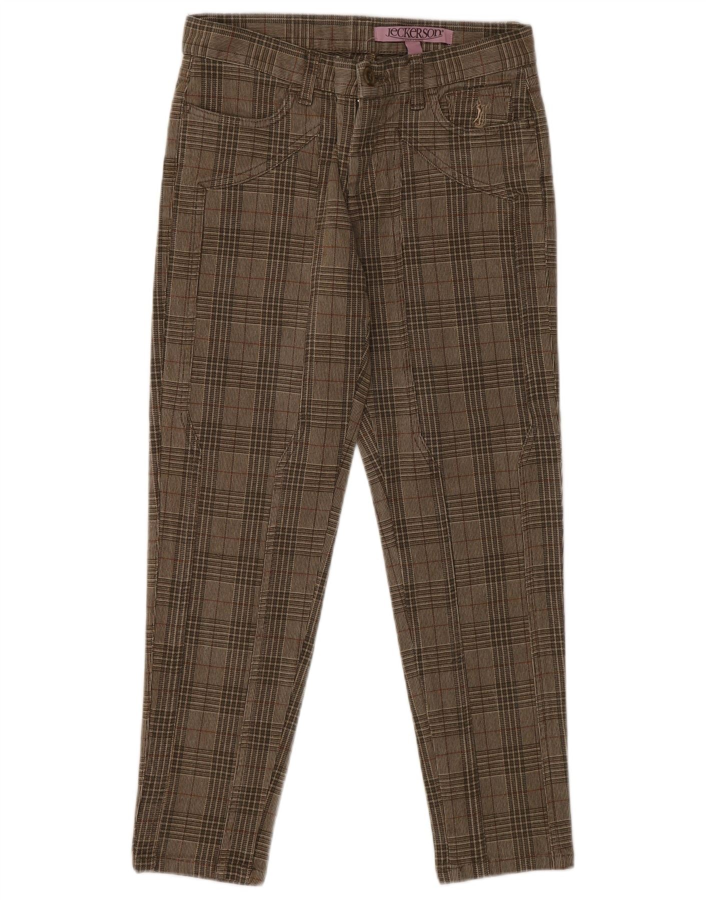 JECKERSON Womens Tapered Casual Trousers W25 L25 Brown Check Cotton