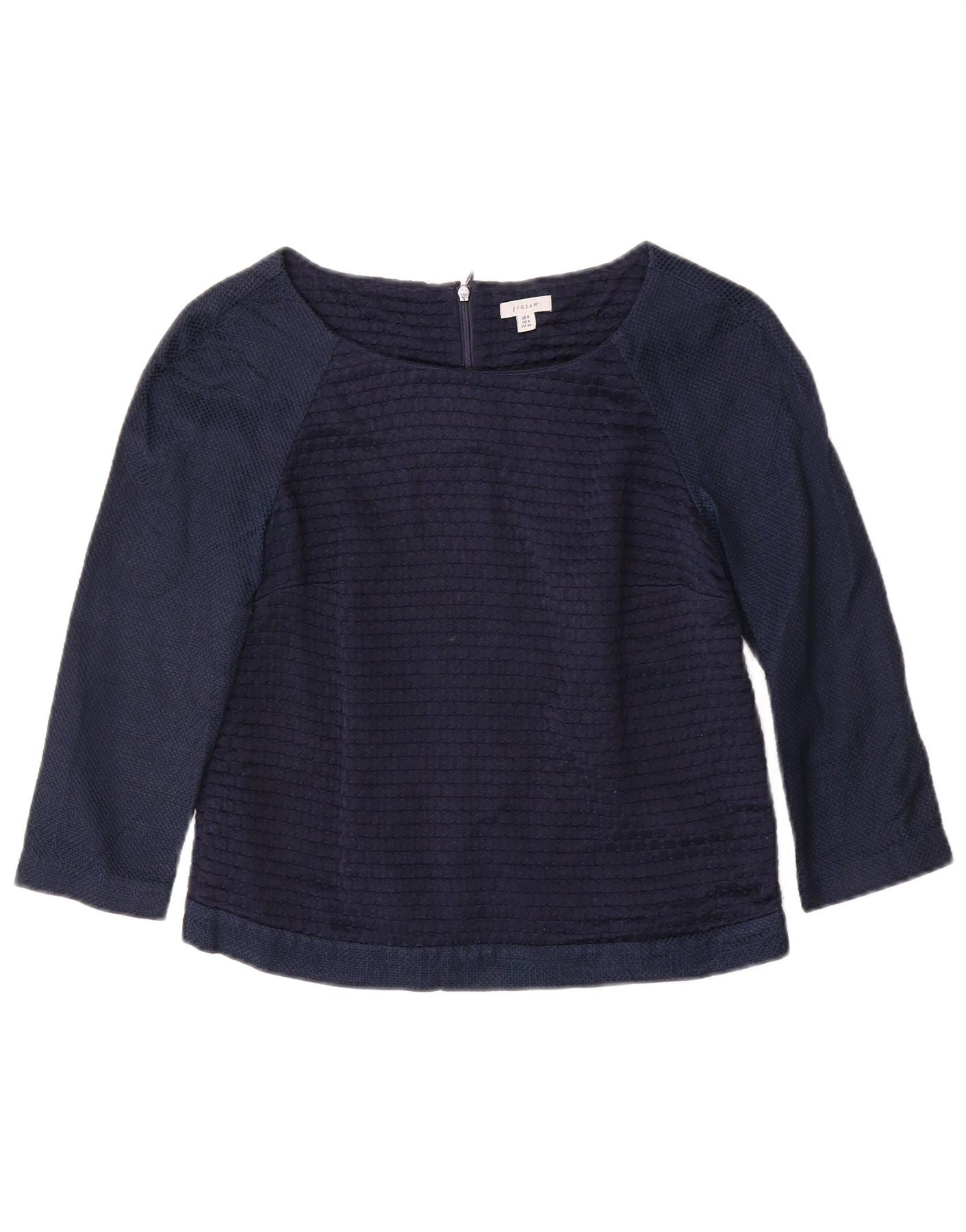 JIGSAW Womens Crop Top 3/4 Sleeve UK 8 Small Navy Blue Cotton