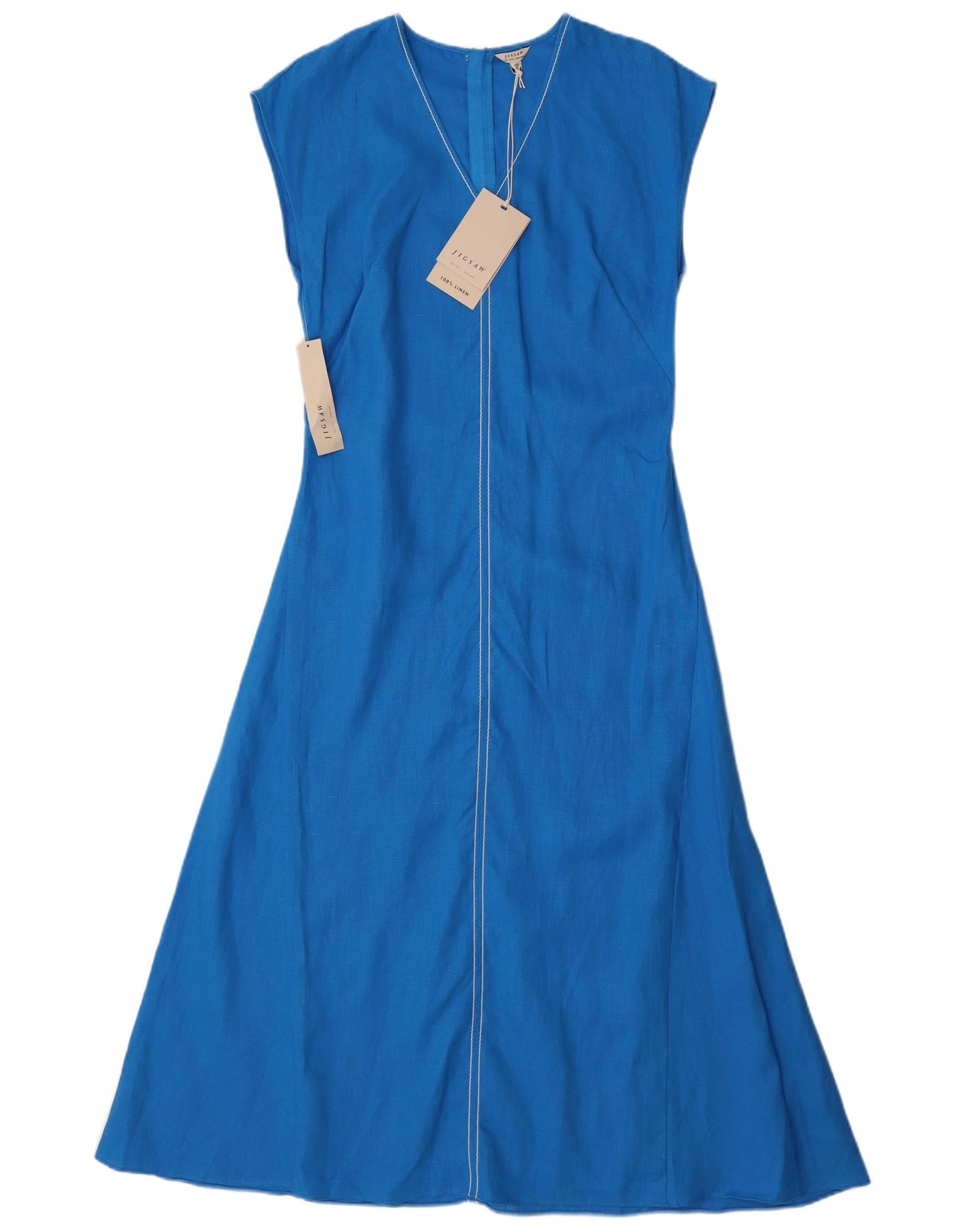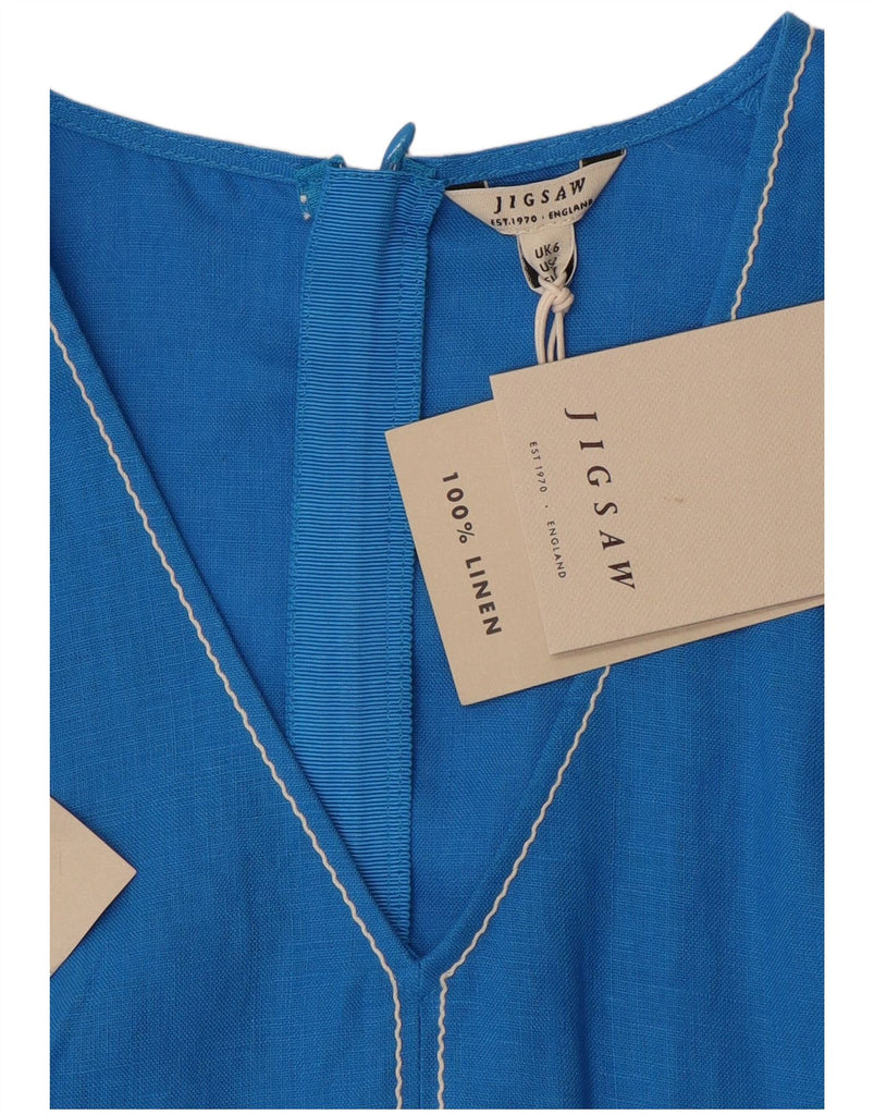 - AI Description: This Jigsaw womens A-line dress is crafted from 100% woven linen, offering a breathable and natural texture in a sophisticated blue hue. It features a flattering V-neckline and a sleeveless design for a light feel. The relaxed A-line silhouette drapes gracefully, ensuring comfort and style. A discreet zip closure provides a seamless finish. This classic piece is perfect for warm weather.