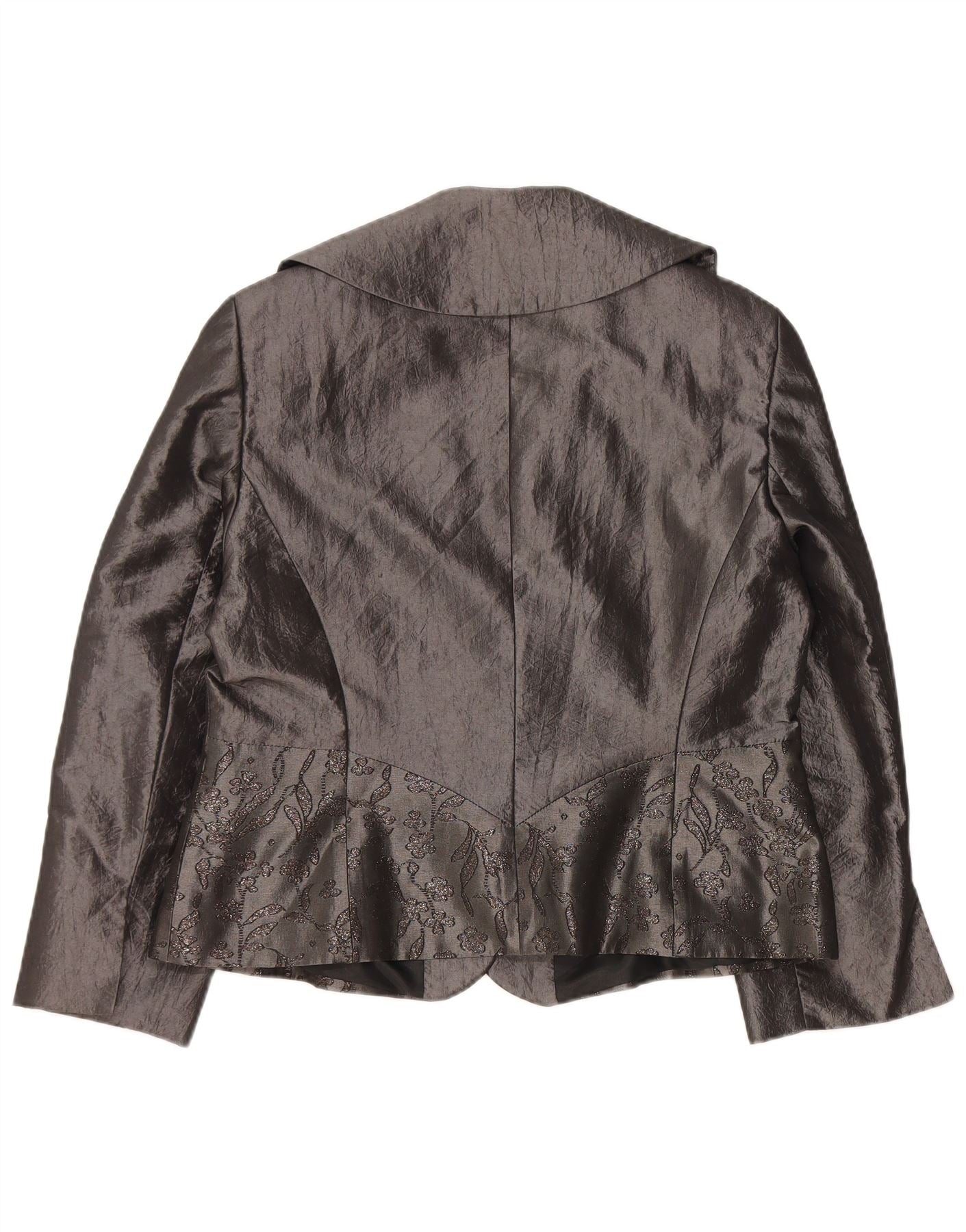 JOHN BENTLEY Damen-Cardigan-Oberteil UK 14 Large Graues Blumenmuster aus Polyester