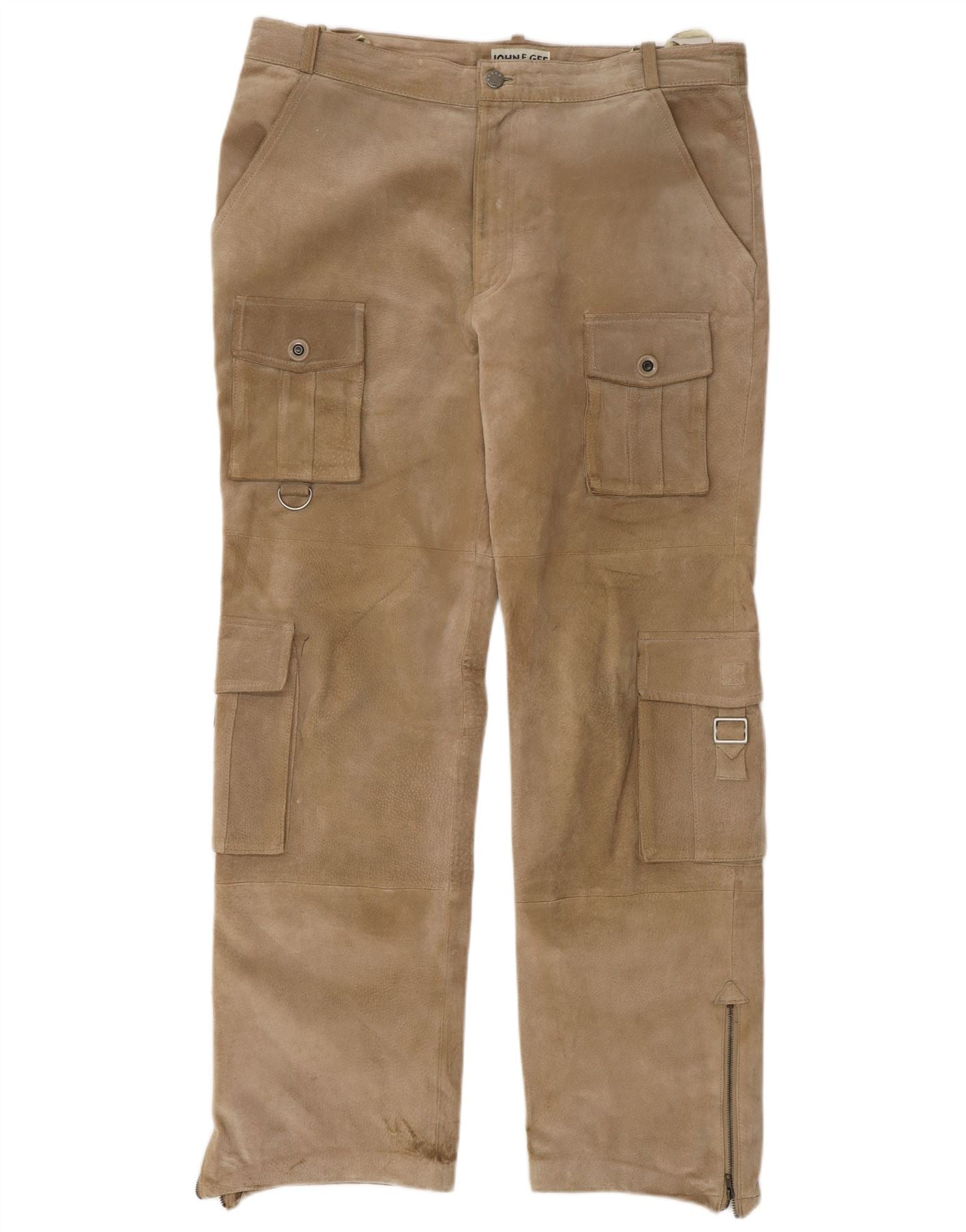 GENNY Damen 2-Knopf-Blazerjacke US 14 XL Beige karierte Seide