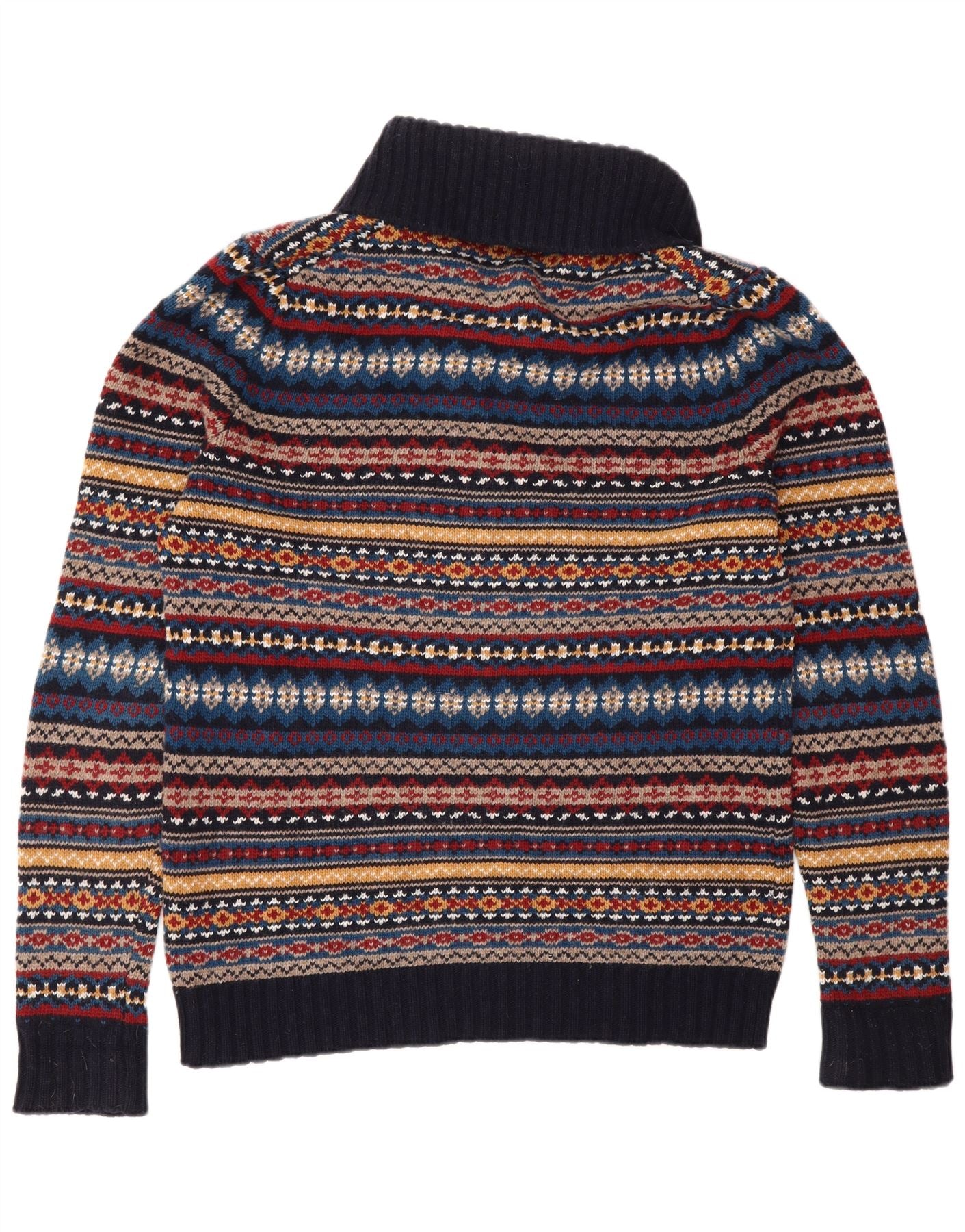 John Lewis Herren-Pullover mit Schalkragen, mittleres Marineblau, Fair Isle-Muster