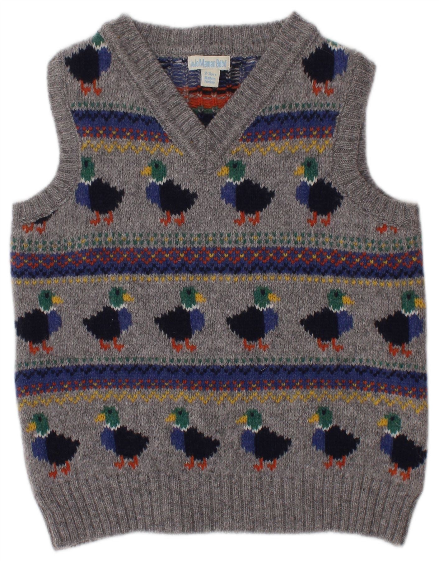 JOJO MAMAN BEBE Jungen-Tanktop, 2–3 Jahre, graue Fair-Isle-Lammwolle