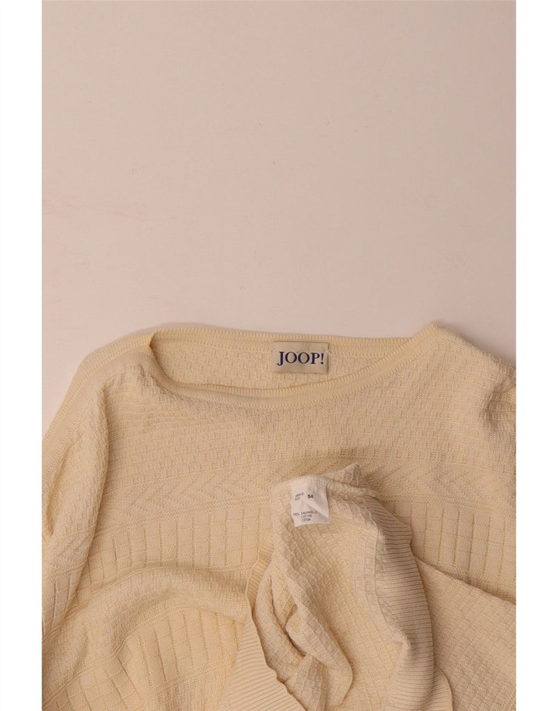 - AI Description: This Joop men's Crew Neck Jumper Sweater is crafted from luxurious 100 percent lambswool, offering a soft, fine knit texture. The classic round neck and long sleeves provide a timeless silhouette. Its pullover design ensures effortless wear. A regular fit offers comfortable, everyday appeal. The off-white colour maintains a clean, versatile aesthetic. This piece is perfect for refined layering.