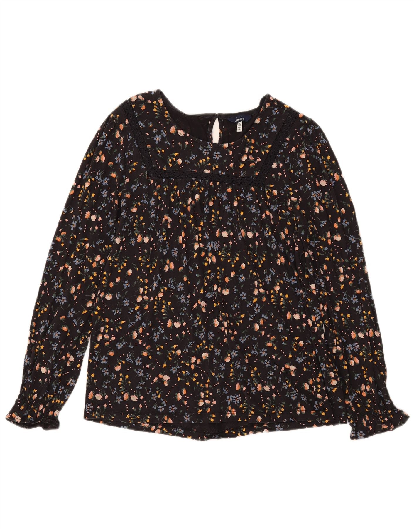 Joules Langarm-Blusenoberteil für Damen, UK 12, Mittelschwarz, geblümt, Baumwolle