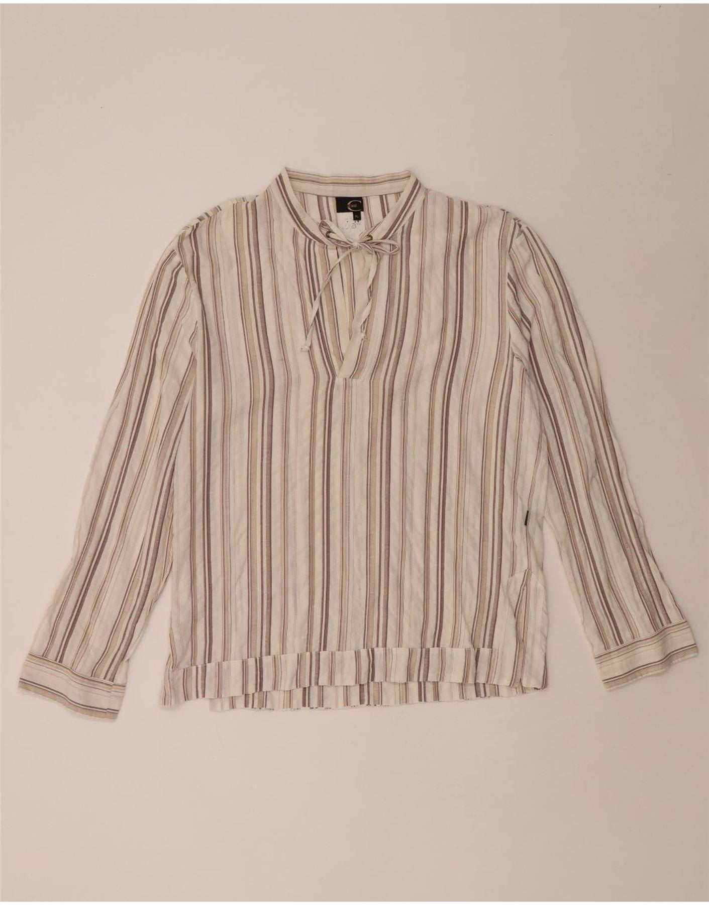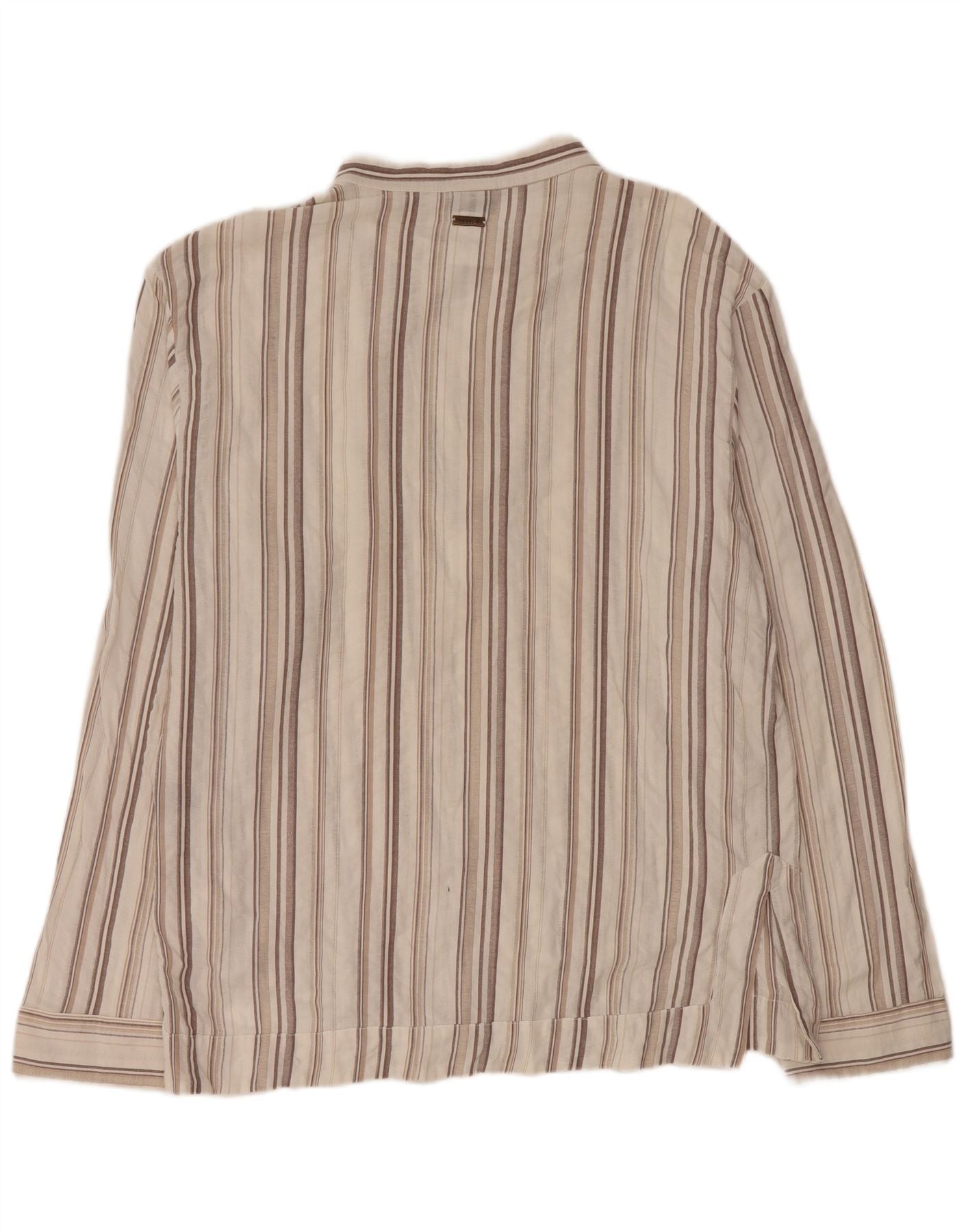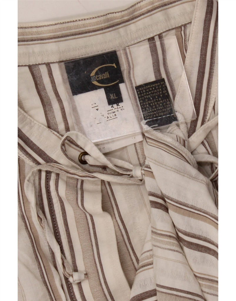JUST CAVALLI Womens Long Sleeve Blouse Top UK 18 XL Off White Striped