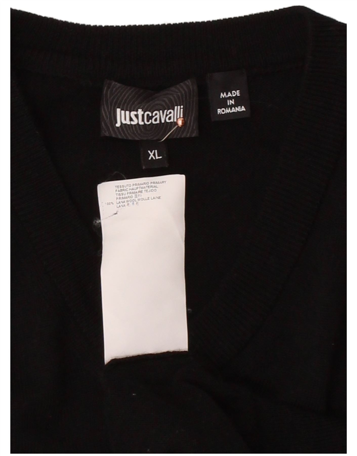 JUST CAVALLI Womens Longline Vest Tank Top UK 18 XL Black Wool