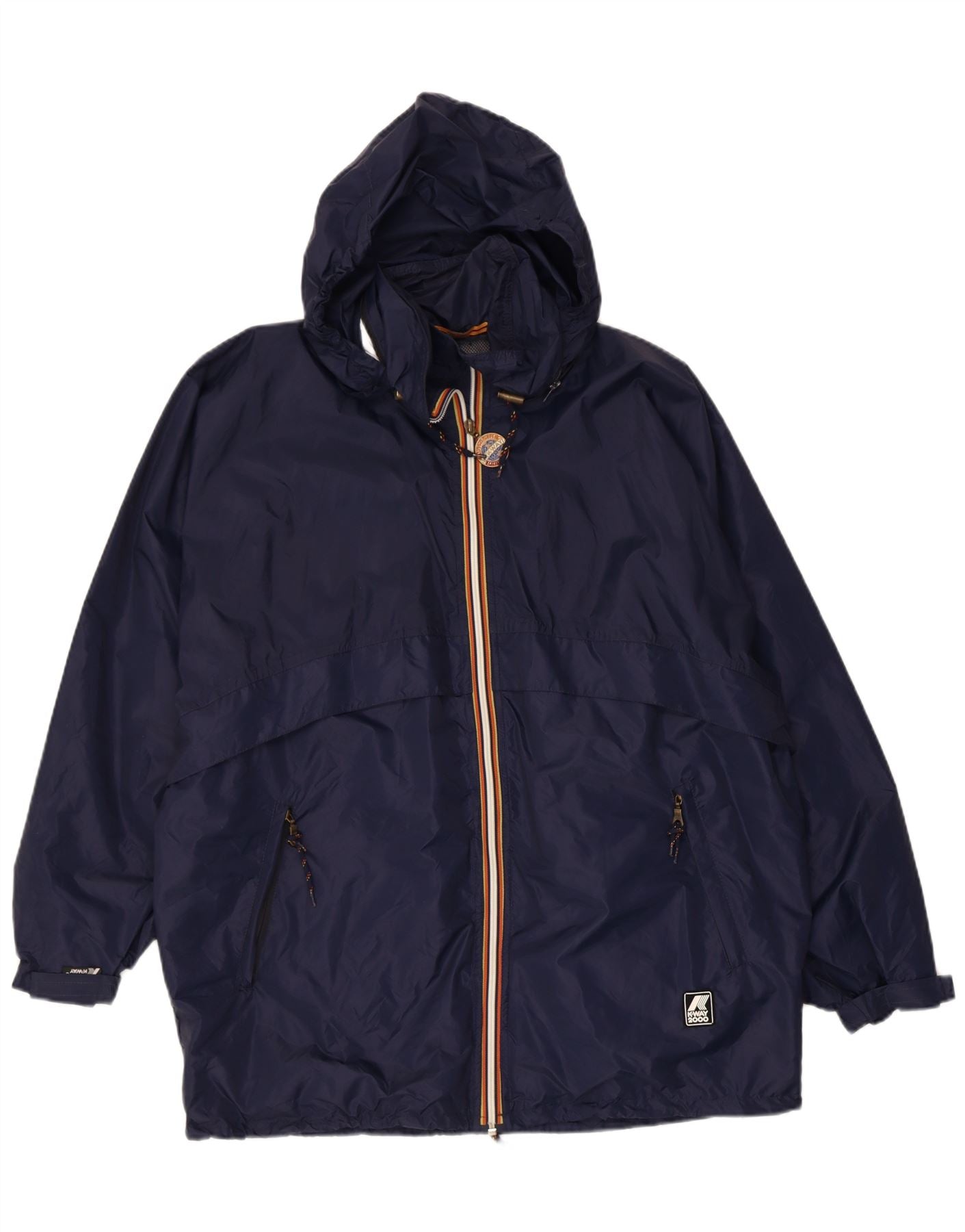 K-WAY Mens Loose Fit Hooded Rain Jacket UK 38 Medium Navy Blue Polyamide