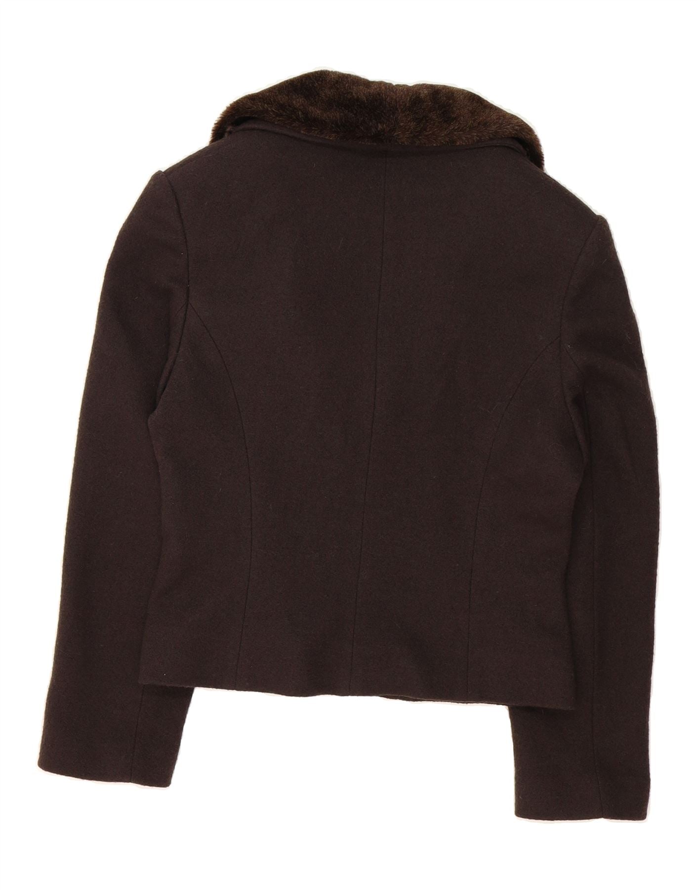 KALIKO Womens Crop Open Blazer Jacket UK 14 Large Brown Wool