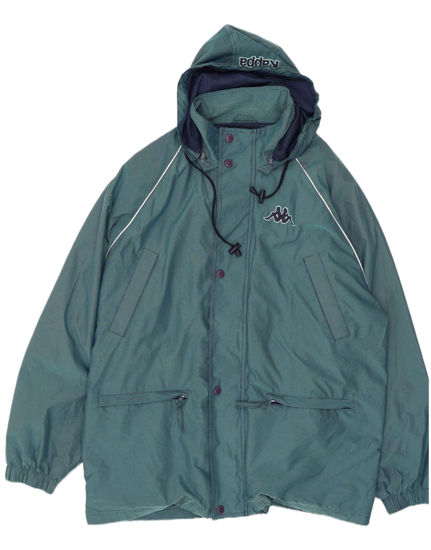 KAPPA Herren-Regenjacke mit grafischer Kapuze, UK 42 XL, blaues Nylon