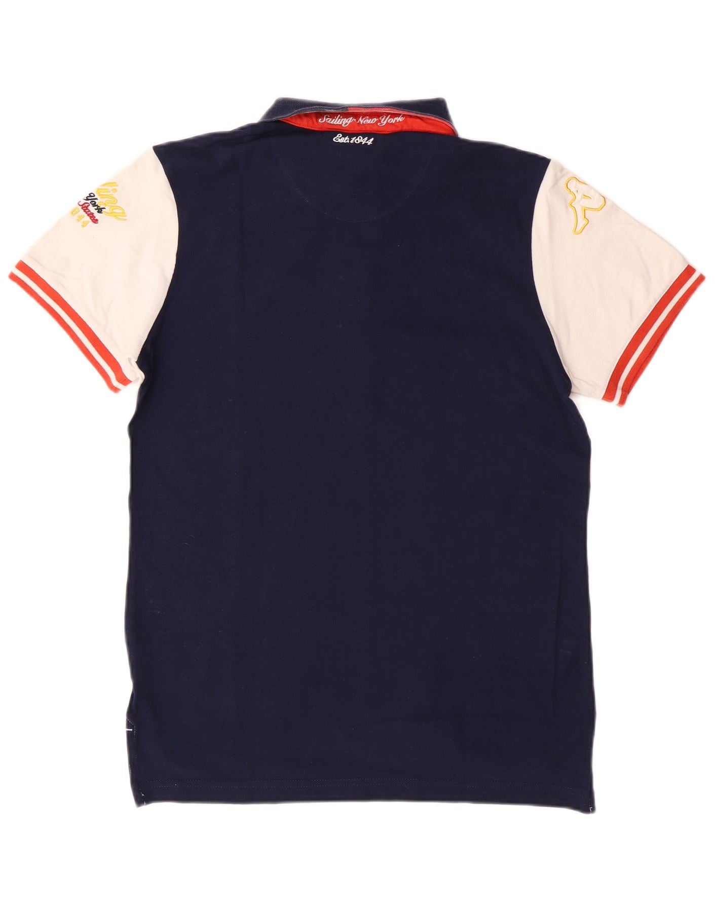 KAPPA Herren-Poloshirt mit Grafik, mittelgroß, marineblau, Colourblock-Baumwolle