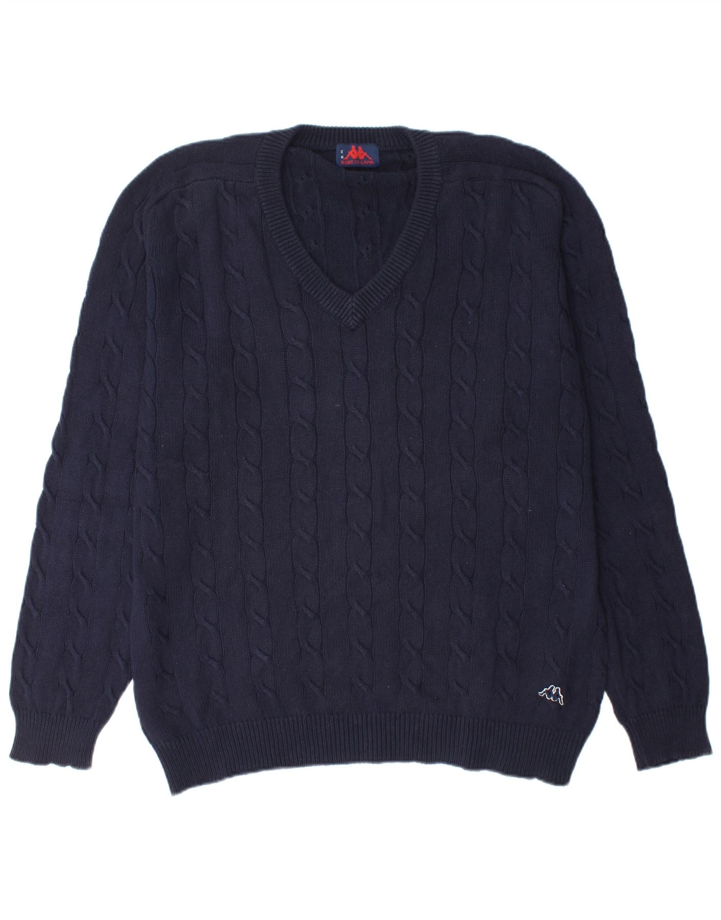 KAPPA Herren-Pullover mit V-Ausschnitt, XL, marineblaue Baumwolle