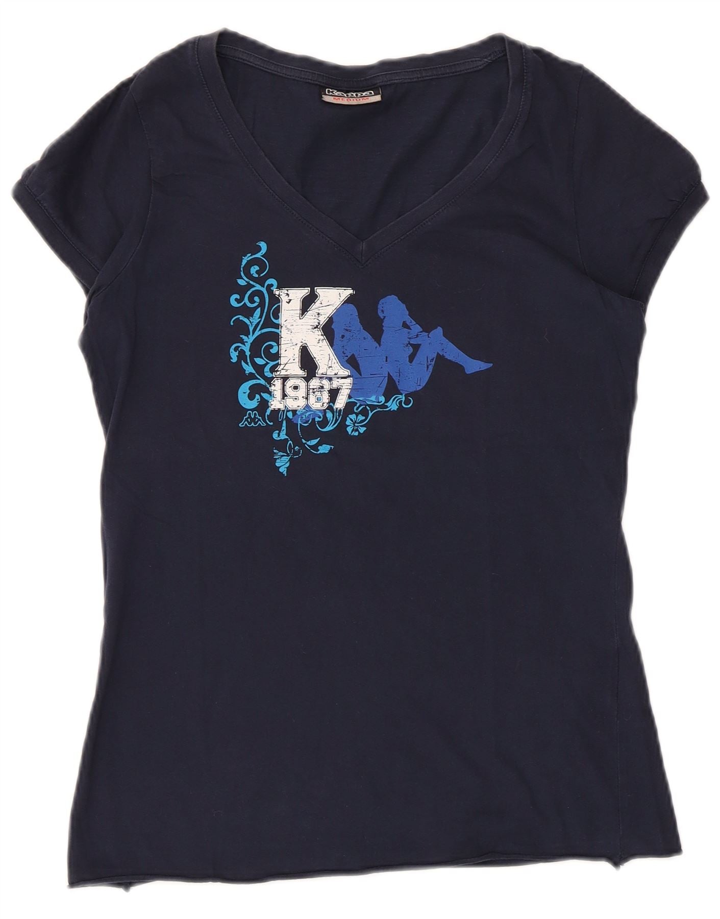 Home > Damen > Depop-Kleidung > KAPPA Damen Grafik-T-Shirt-Oberteil UK 12 Medium Marineblau Baumwolle
