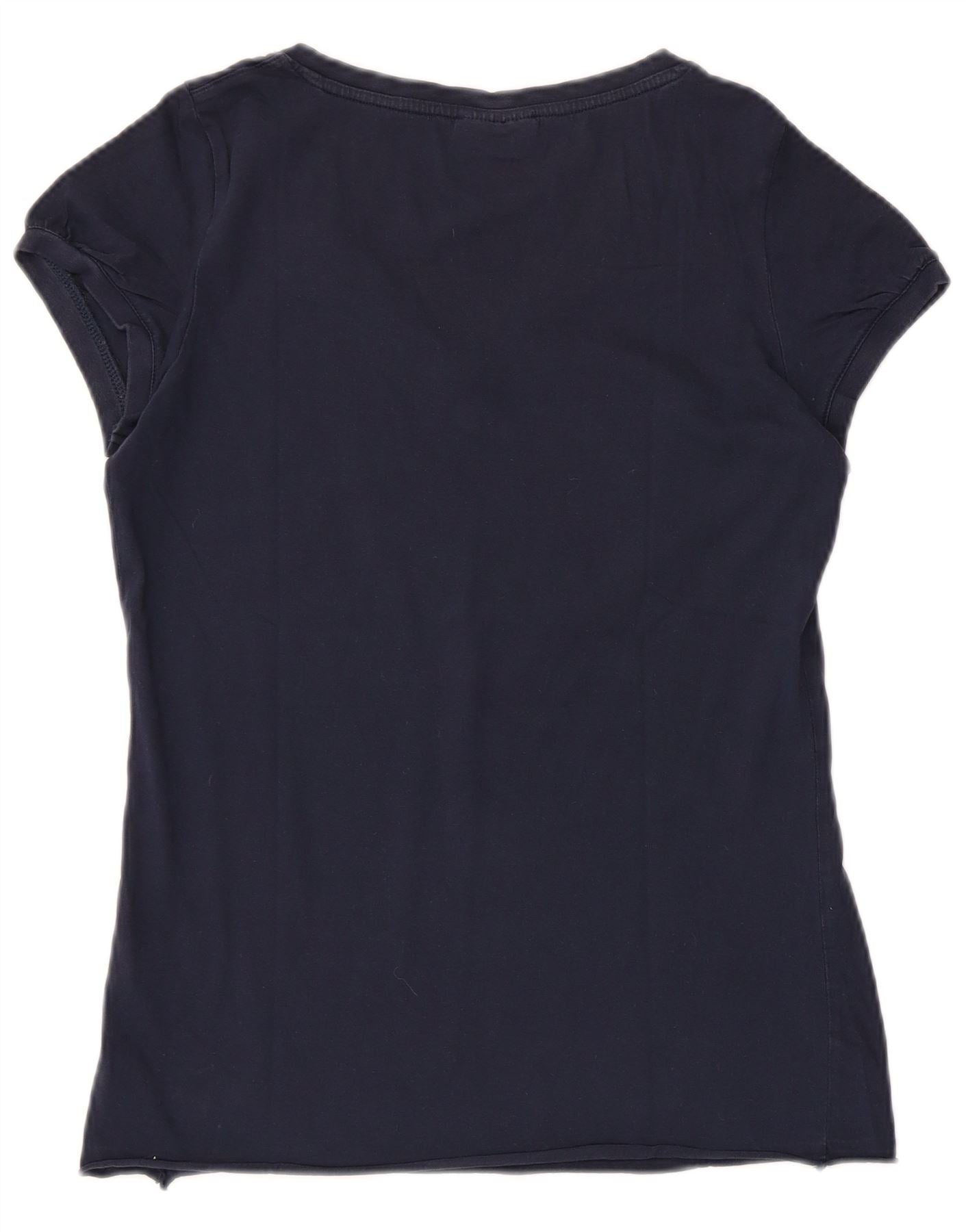 KAPPA Damen Grafik-T-Shirt-Oberteil UK 12 Medium Marineblau Baumwolle