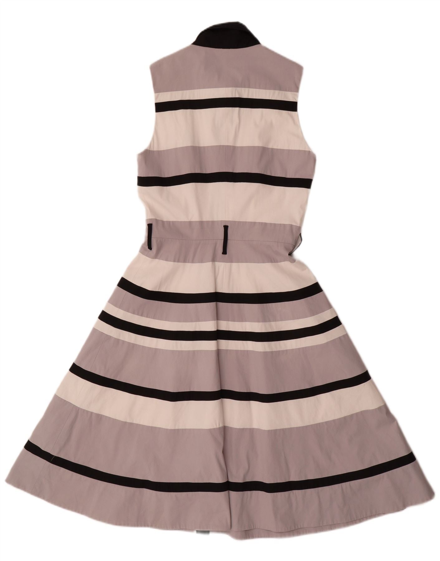 - AI Description: This Karen Millen womens shirt dress is crafted from a woven cotton blend with a hint of elastane. It features a sophisticated multicoloured striped pattern. The collared neckline and button-up front offer a classic silhouette. Its sleeveless design is perfect for warmer days. An empire waist flatters the figure. Practical pockets add functionality. The regular fit ensures comfortable wear for a timeless style.