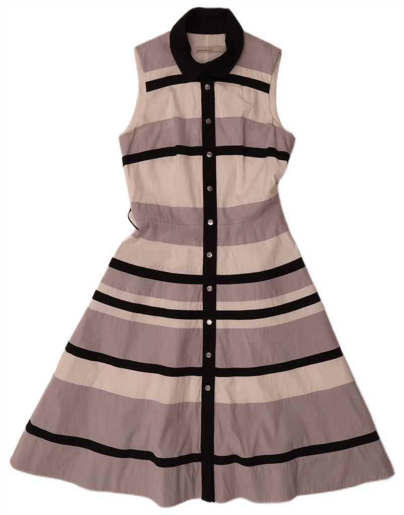 KAREN MILLEN Womens Sleeveless Maxi Dress UK 10 Small Grey Striped Cotton