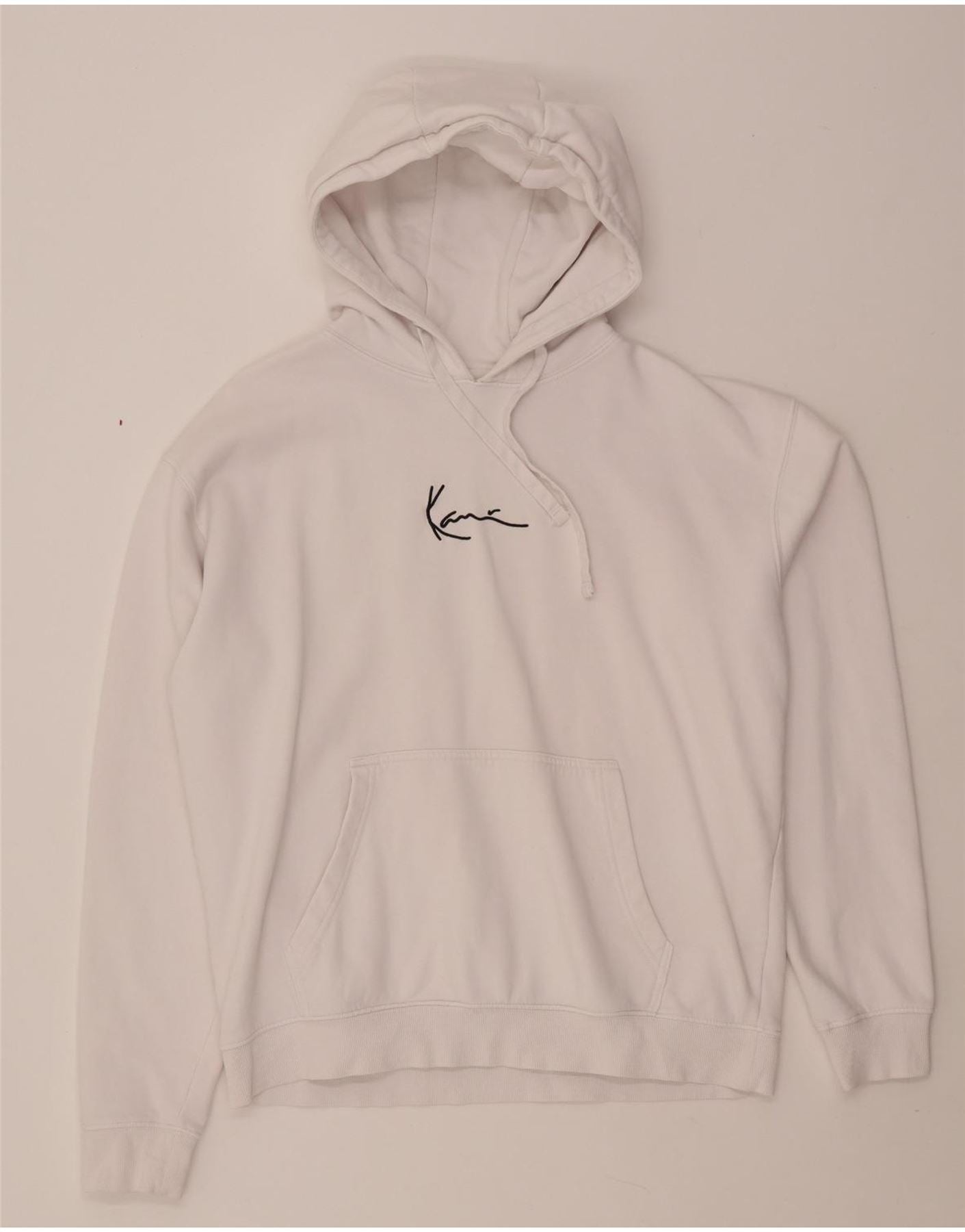 KARL KANI Herren-Kapuzenpullover mit lockerer Passform, Grafik, Größe S, weiße Baumwolle