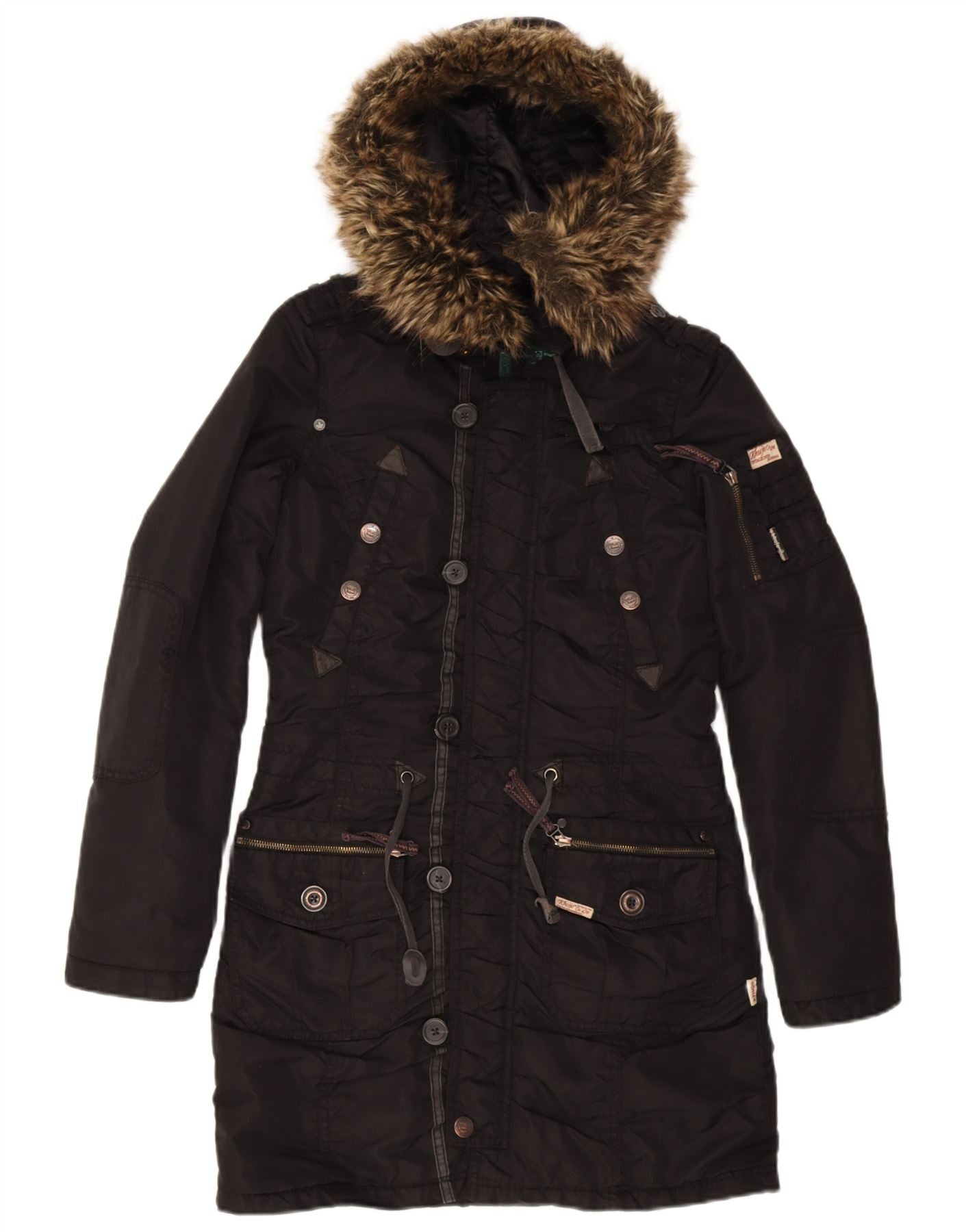 KHUJO Damen-Parka mit Kapuze, Gr. 10, Schwarz
