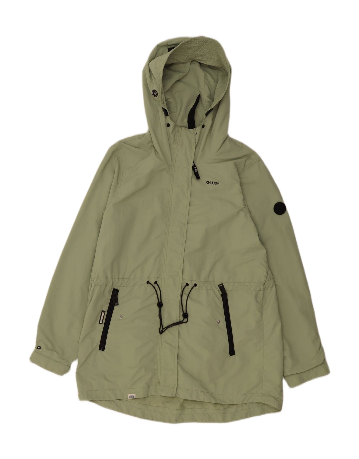 KHUJO Damen-Parkajacke mit normaler Passform und Kapuze, UK 16, Größe L, grünes Nylon