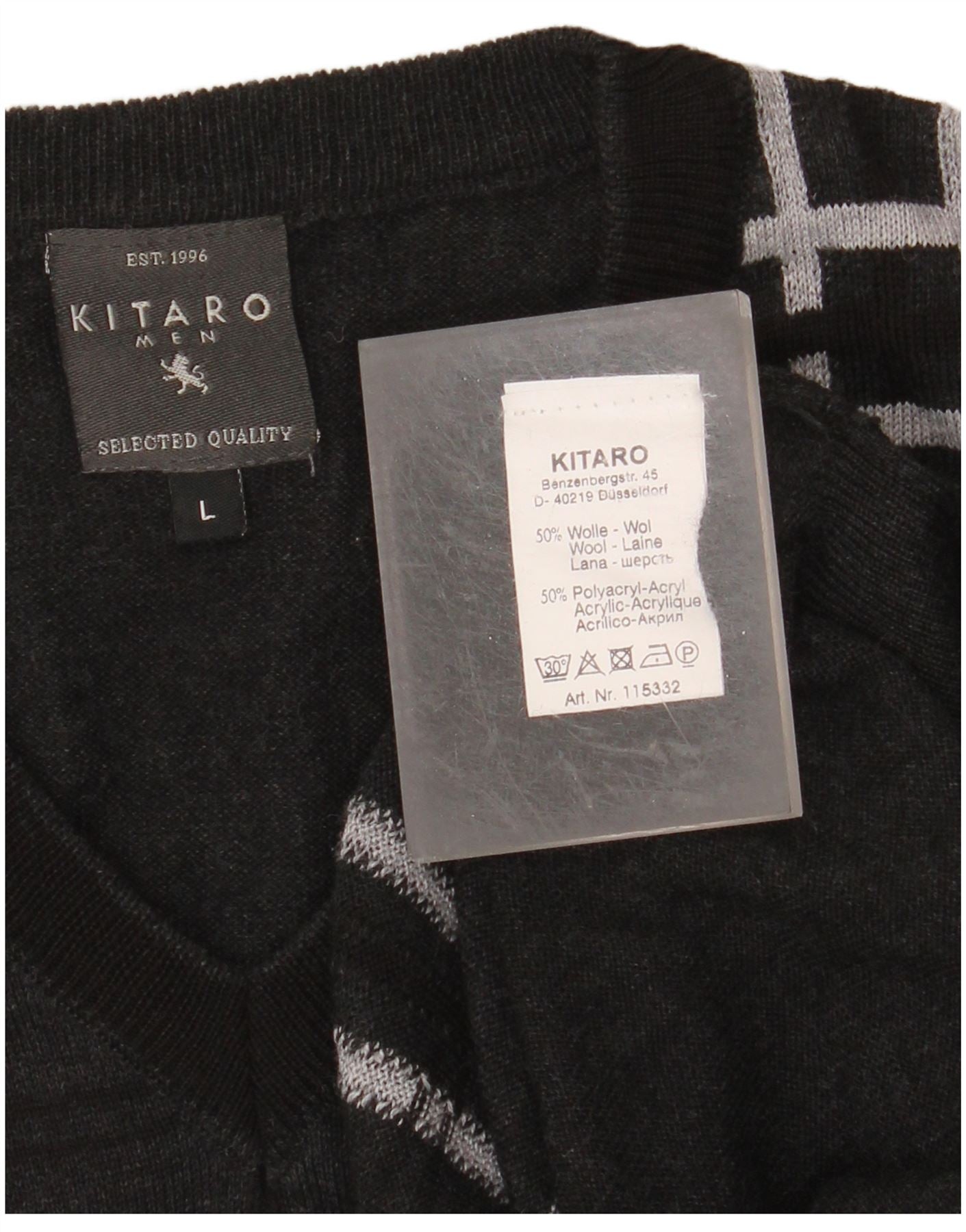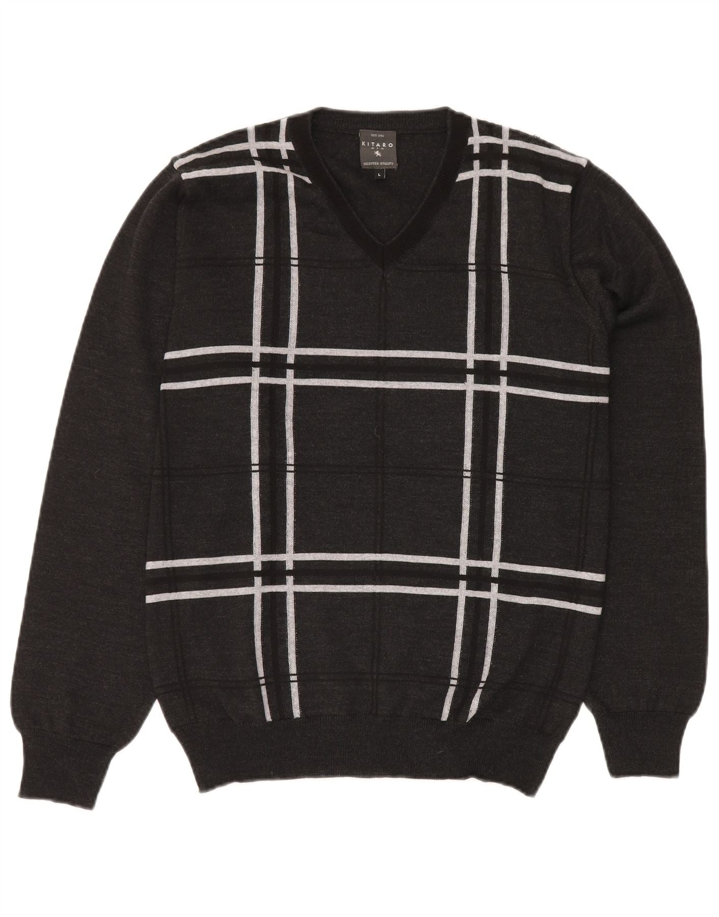 KITARO Herren-Pullover mit V-Ausschnitt, groß, grau kariert, Wolle