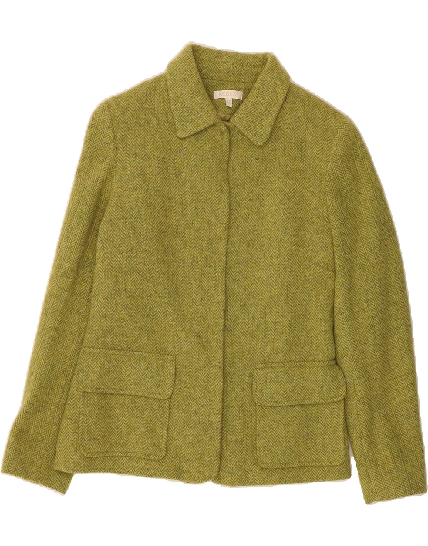 KOOKAI Womens Blazer Jacket EU 40 Medium Green Herringbone Wool