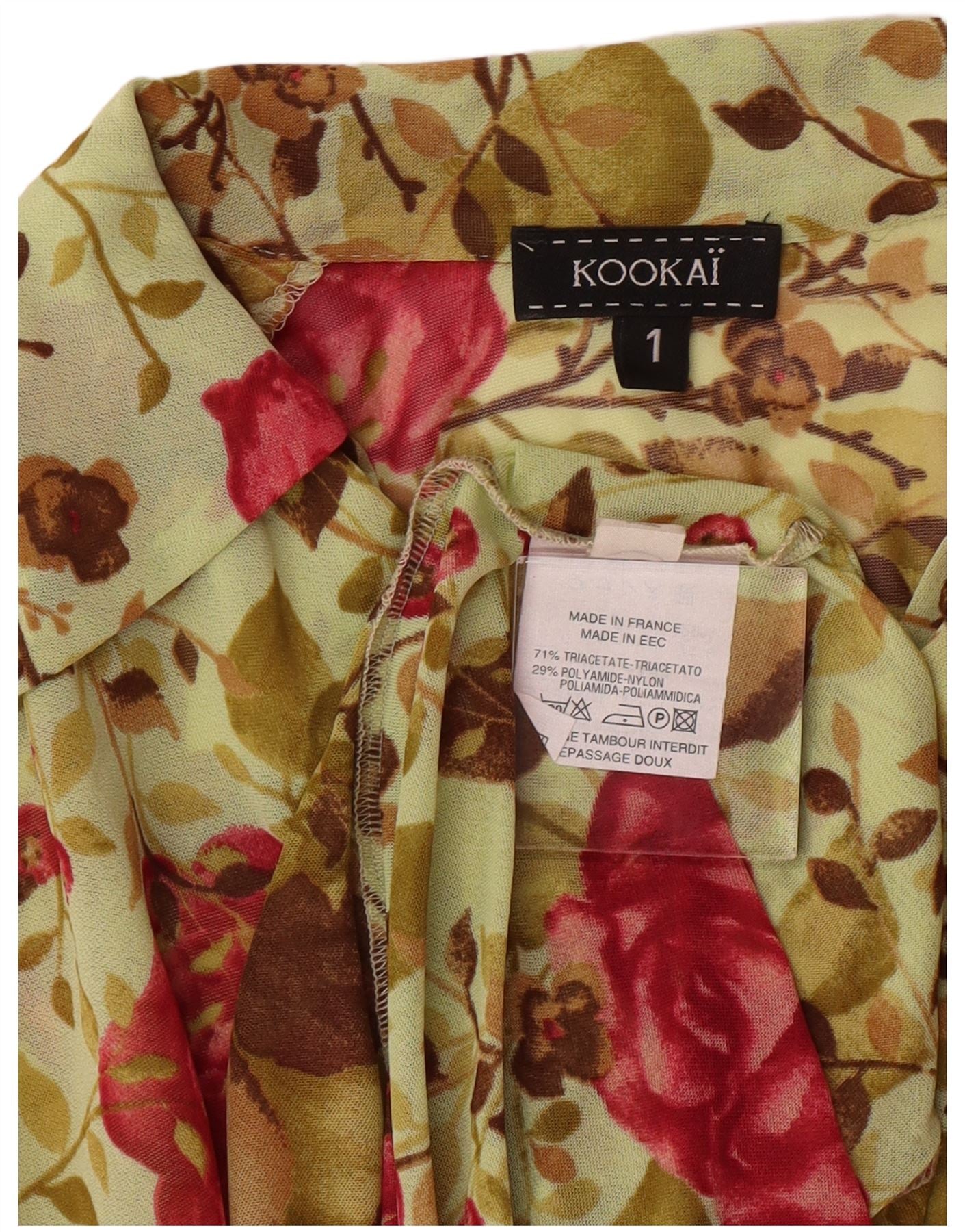 Kookai Damen Langarm-Hemdkleid, Größe 1, klein, grün, florales Bohemian-Kleid