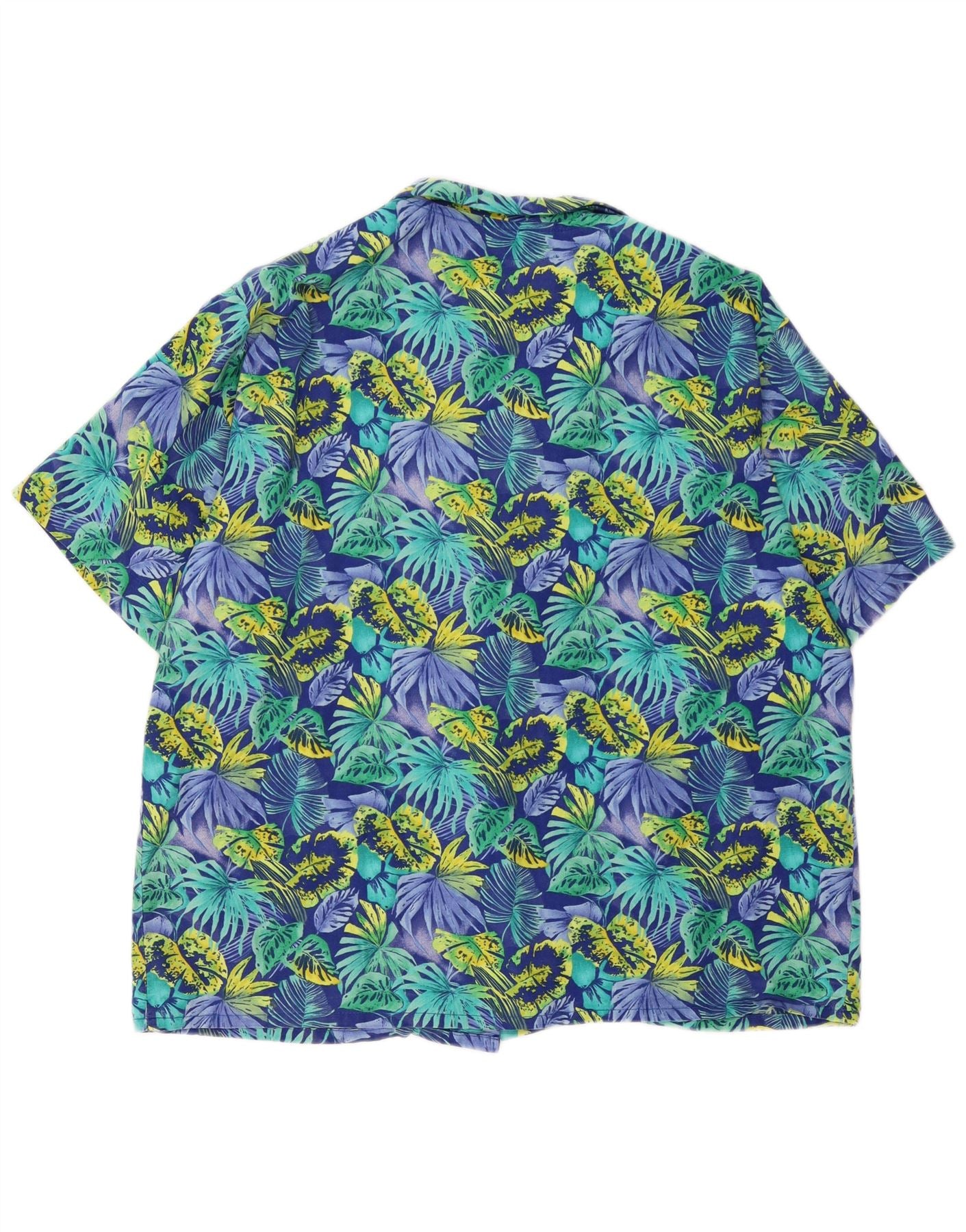 Krazy Herren-Kurzarmhemd, groß, blau, geblümt, Baumwolle, hawaiianisch