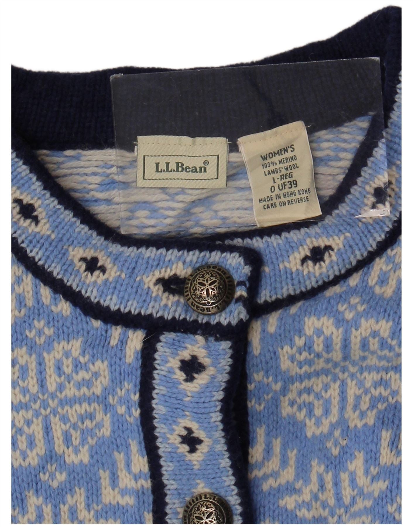 L.L.BEAN Damen-Cardigan-Pullover UK 16 Große blaue Fair-Isle-Merinowolle