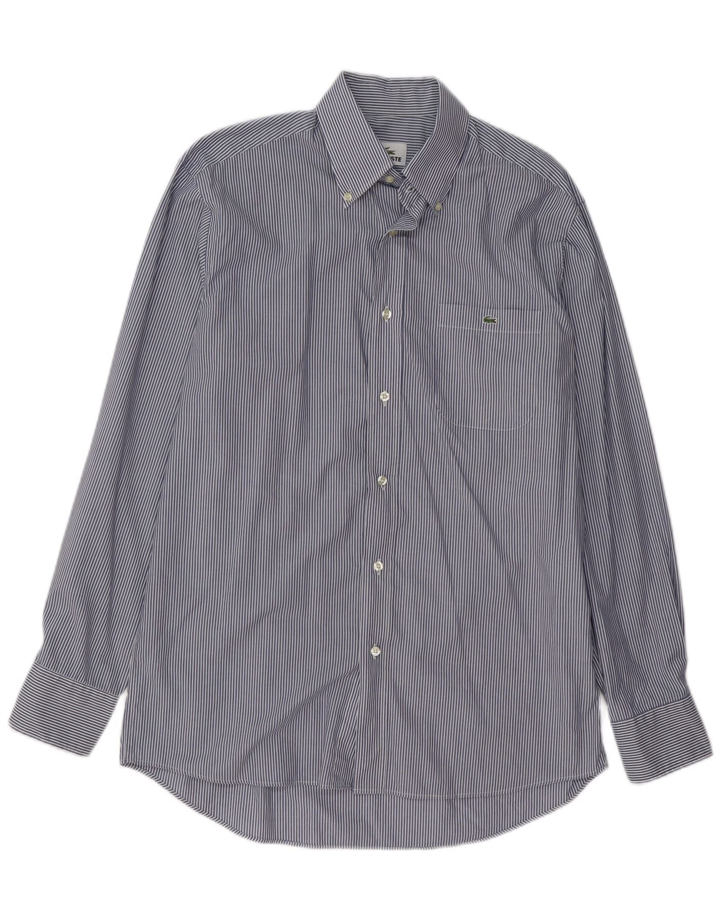 LACOSTE Herrenhemd Größe 40 mittelblaue Nadelstreifen-Baumwolle