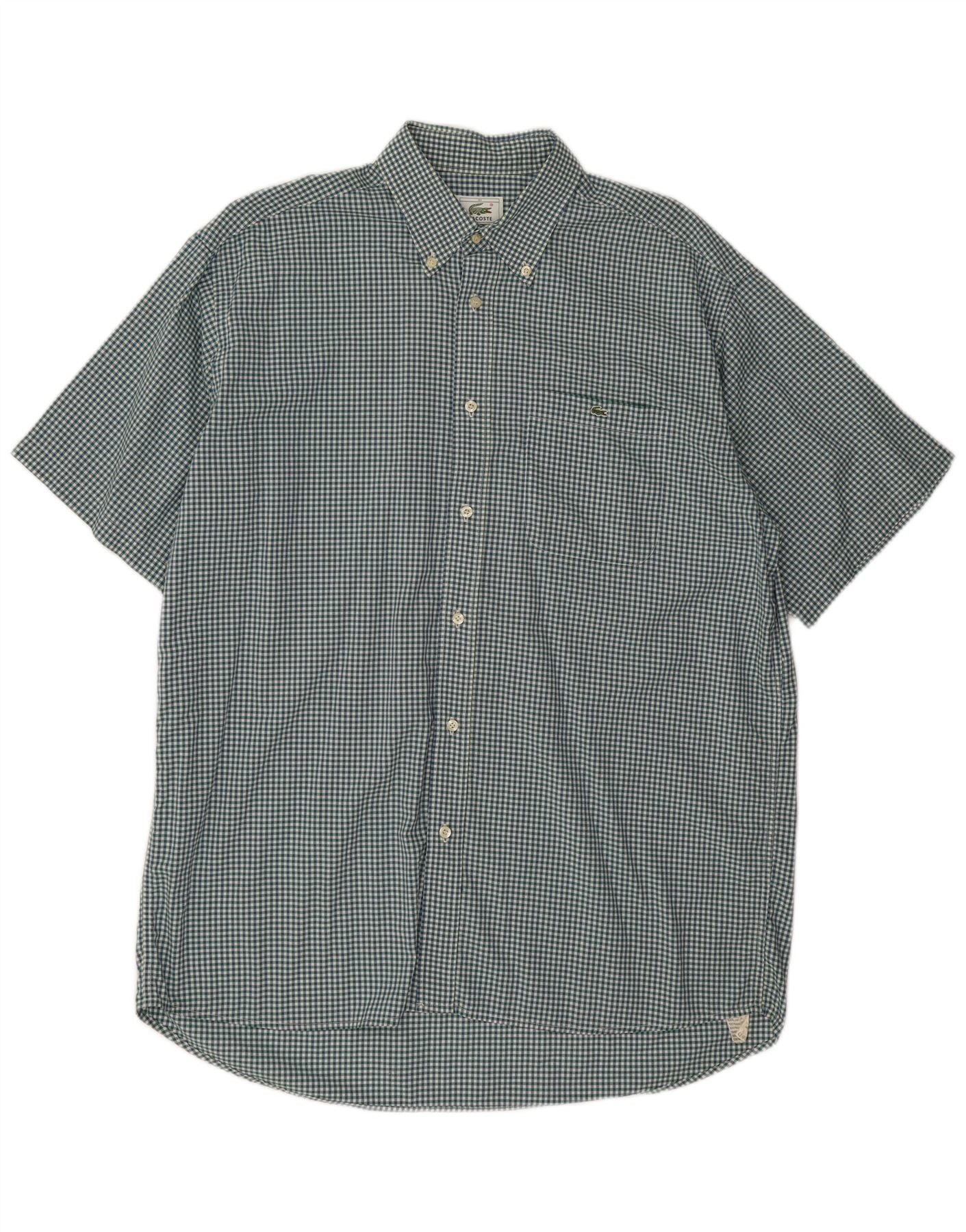 Lacoste Herren-Kurzarmhemd, Größe 41, große grüne Gingham-Baumwolle