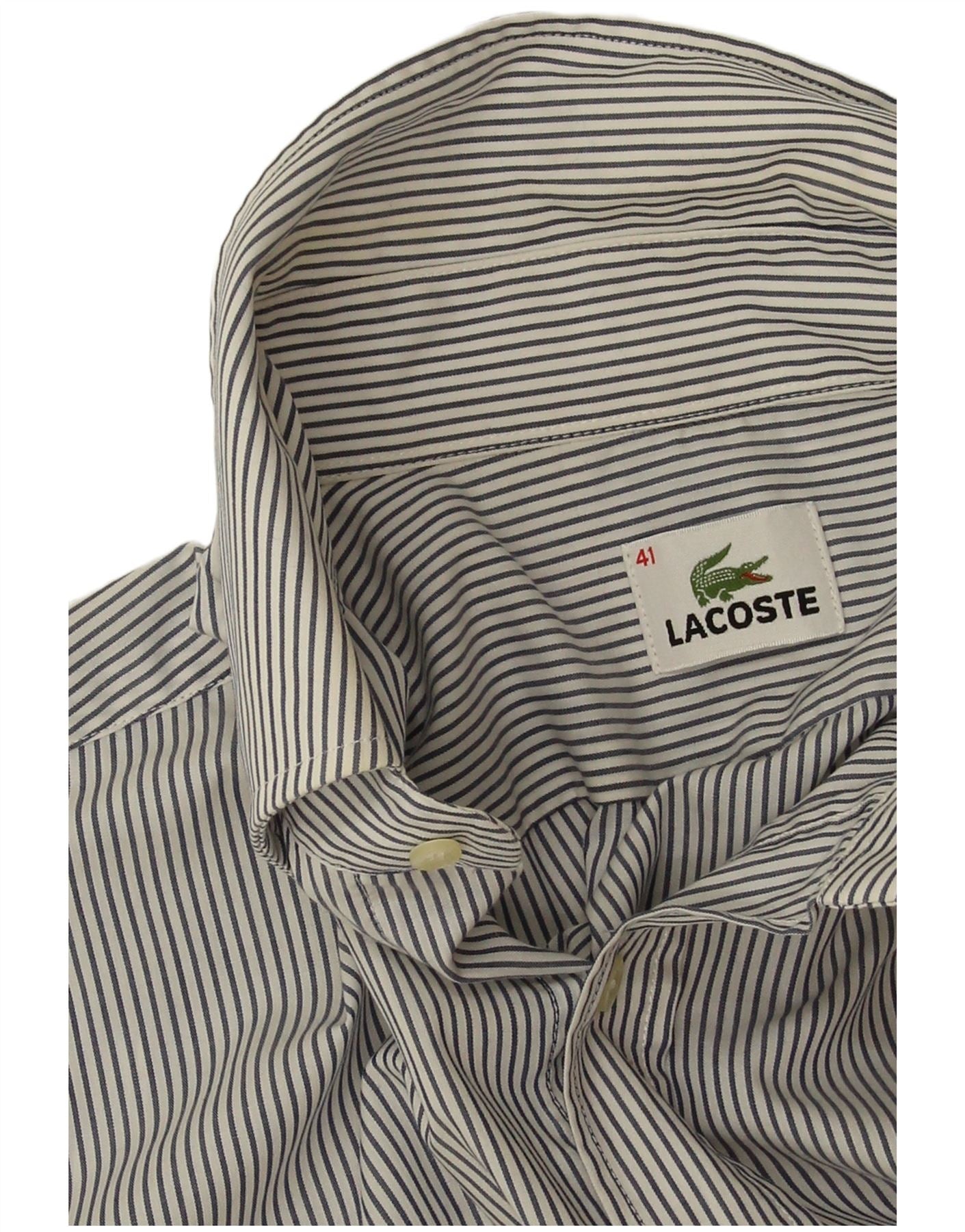 Lacoste Herren-Kurzarmhemd, Größe 41, große graue Nadelstreifen-Baumwolle