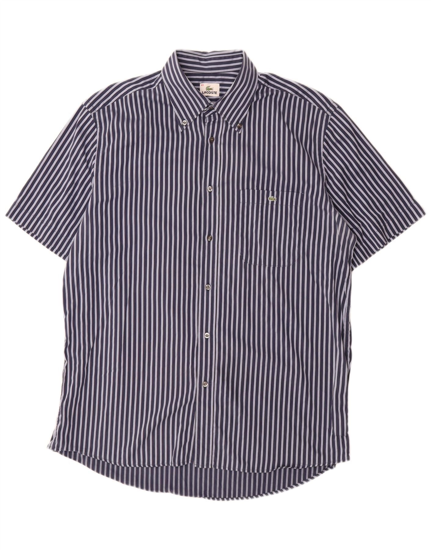 LACOSTE Herren Kurzarmhemd Größe 43 XL Marineblaue Nadelstreifen-Baumwolle