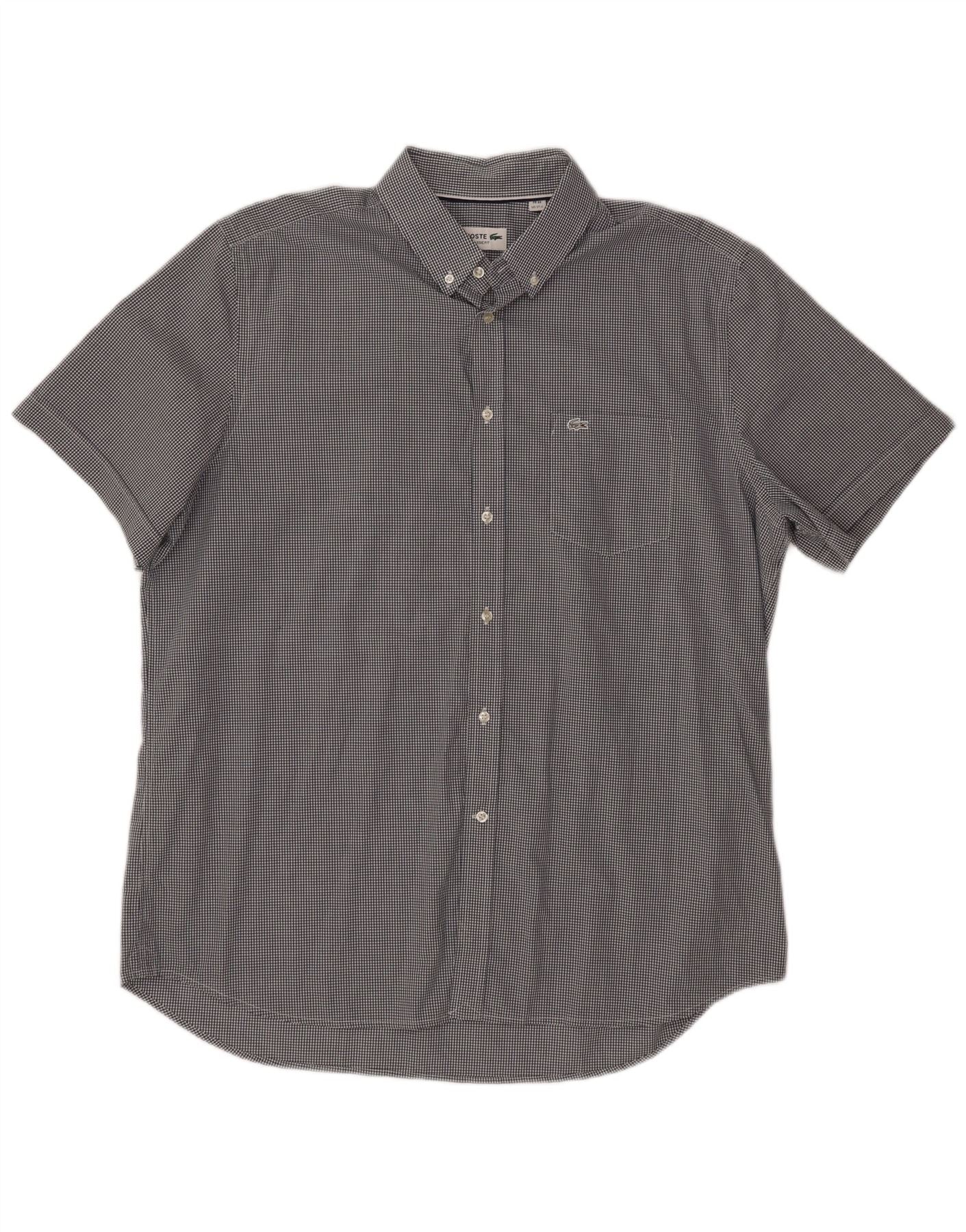 LACOSTE Herren Kurzarmhemd Größe 44 17 1/2 XL Schwarz Gingham