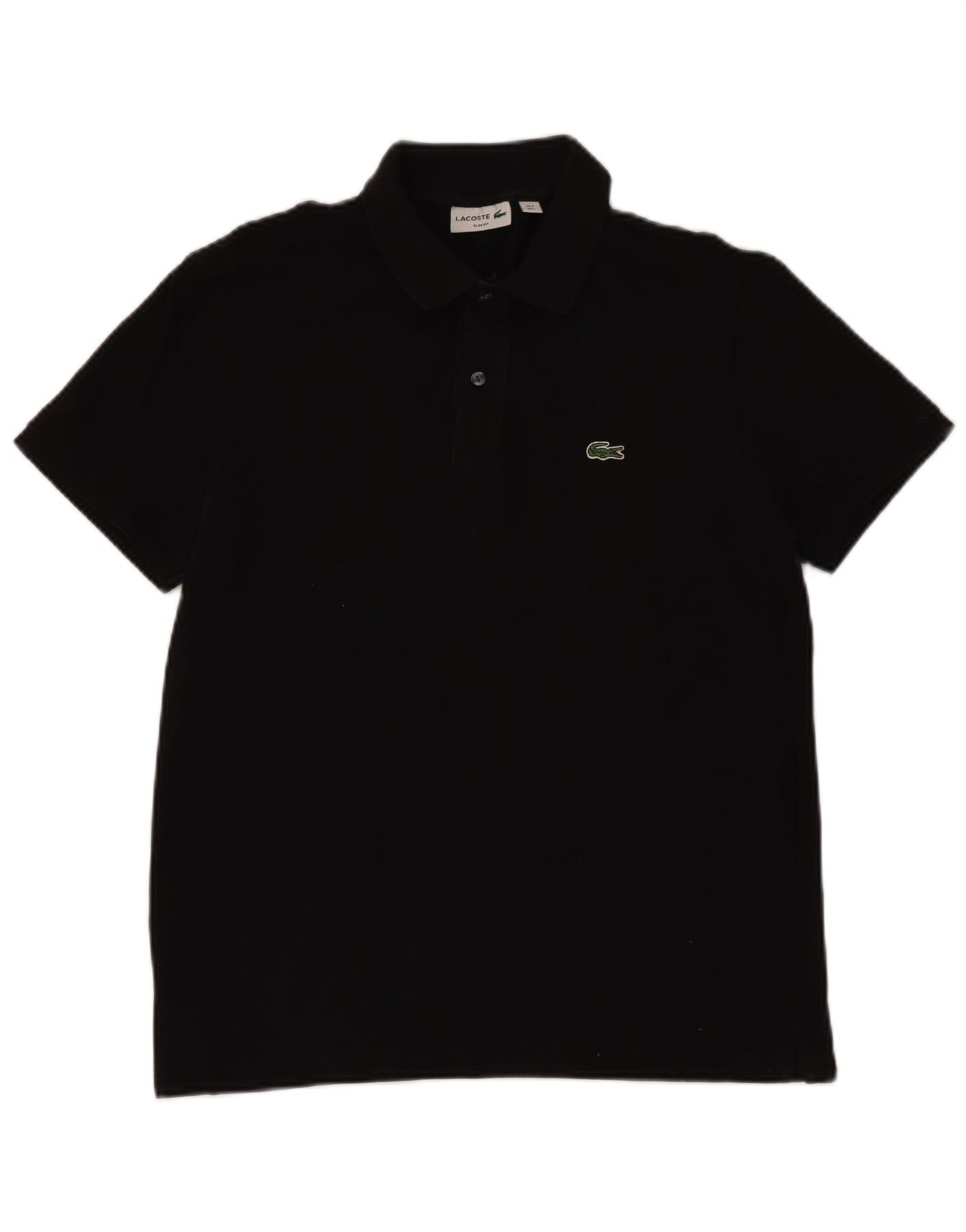 LACOSTE Herren-Poloshirt mit schmaler Passform, Größe 5, groß, schwarze Baumwolle