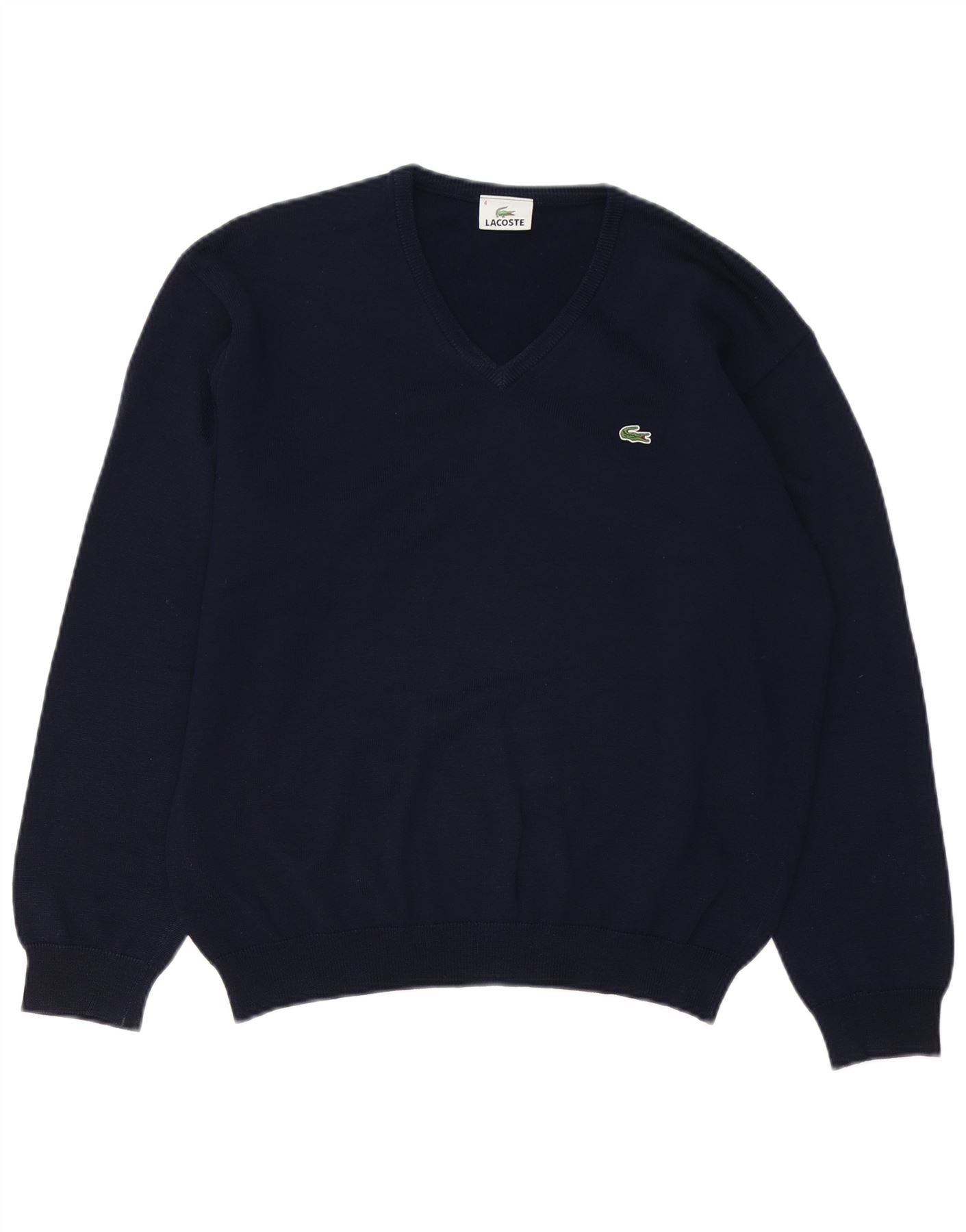 Lacoste Herren-Pullover mit V-Ausschnitt, Größe 4, mittlere marineblaue Schurwolle