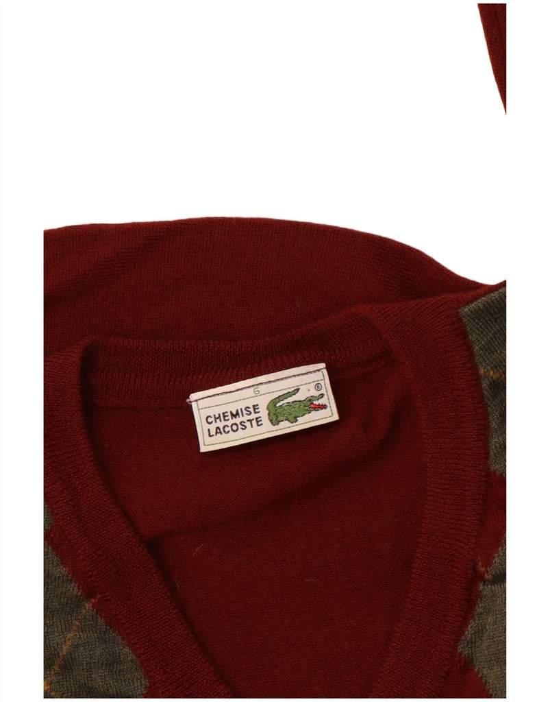 LACOSTE Herren-Pullover mit V-Ausschnitt, Größe 6, XL, rotes Argyle/Diamantmuster