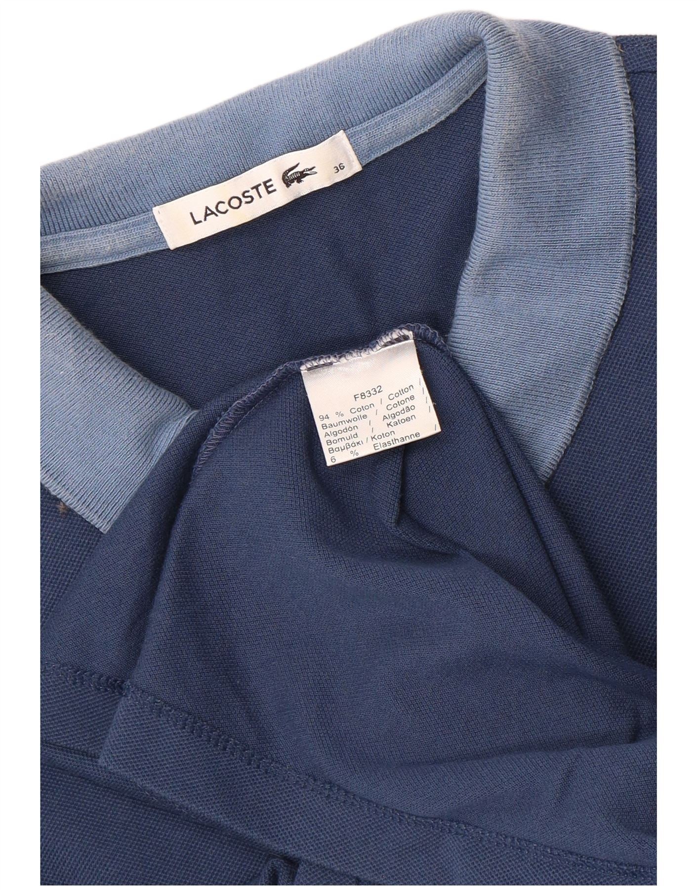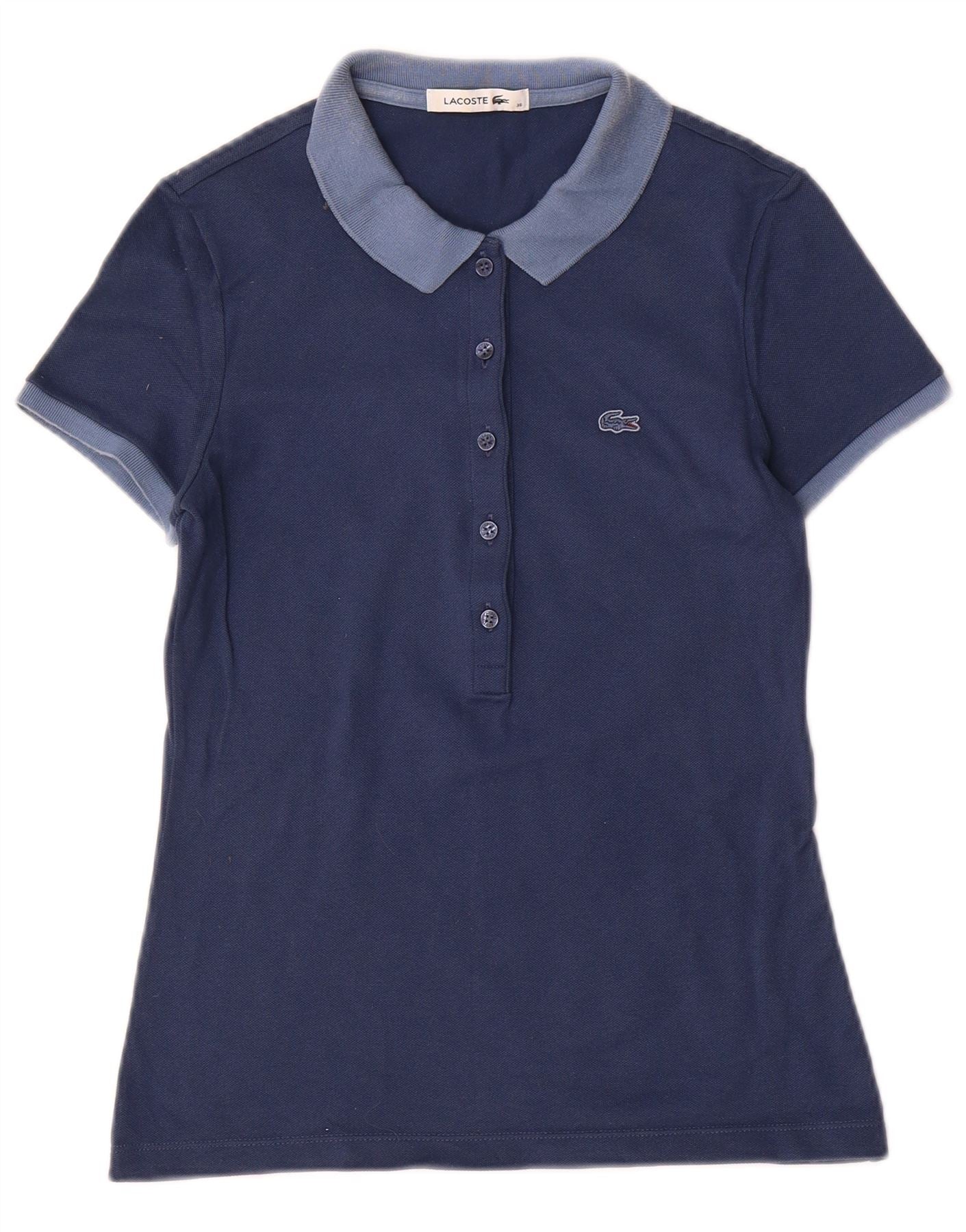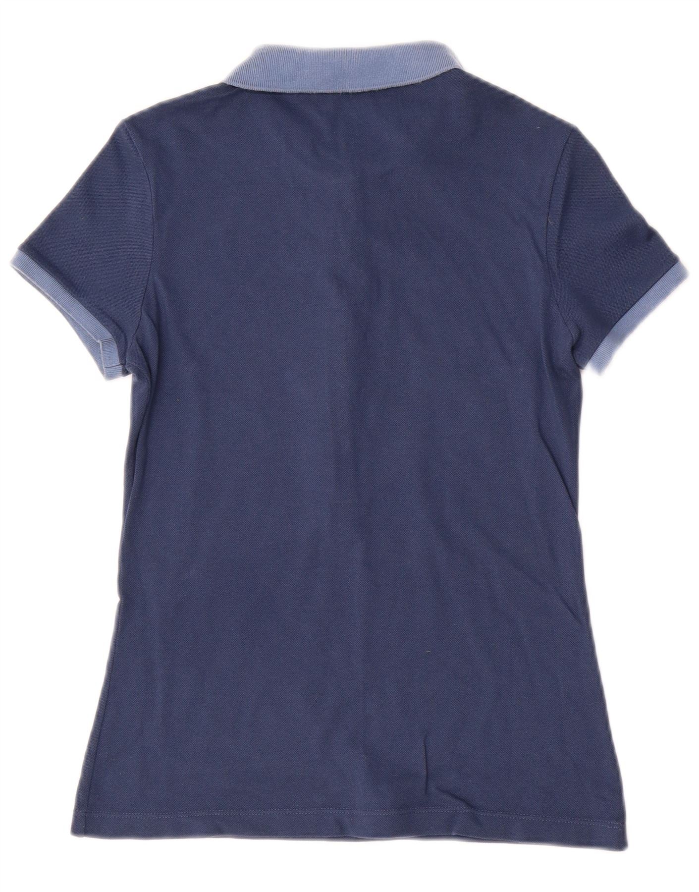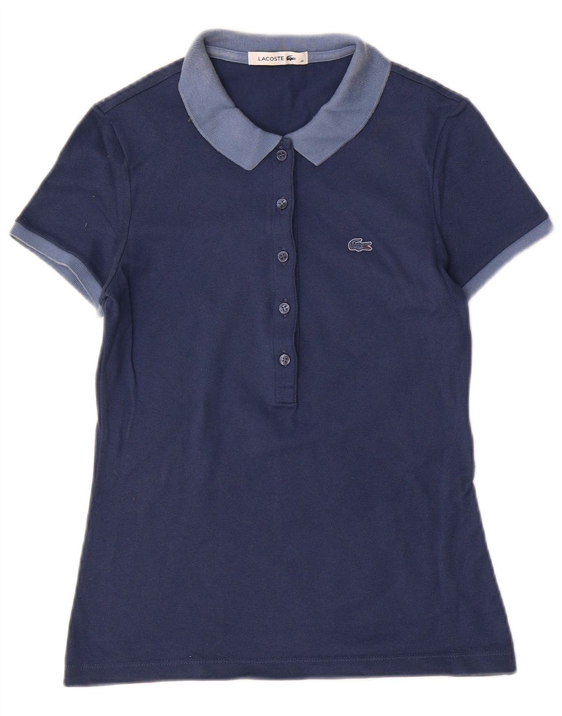 LACOSTE Womens Polo Shirt Size 36 Small Navy Blue Colourblock Cotton