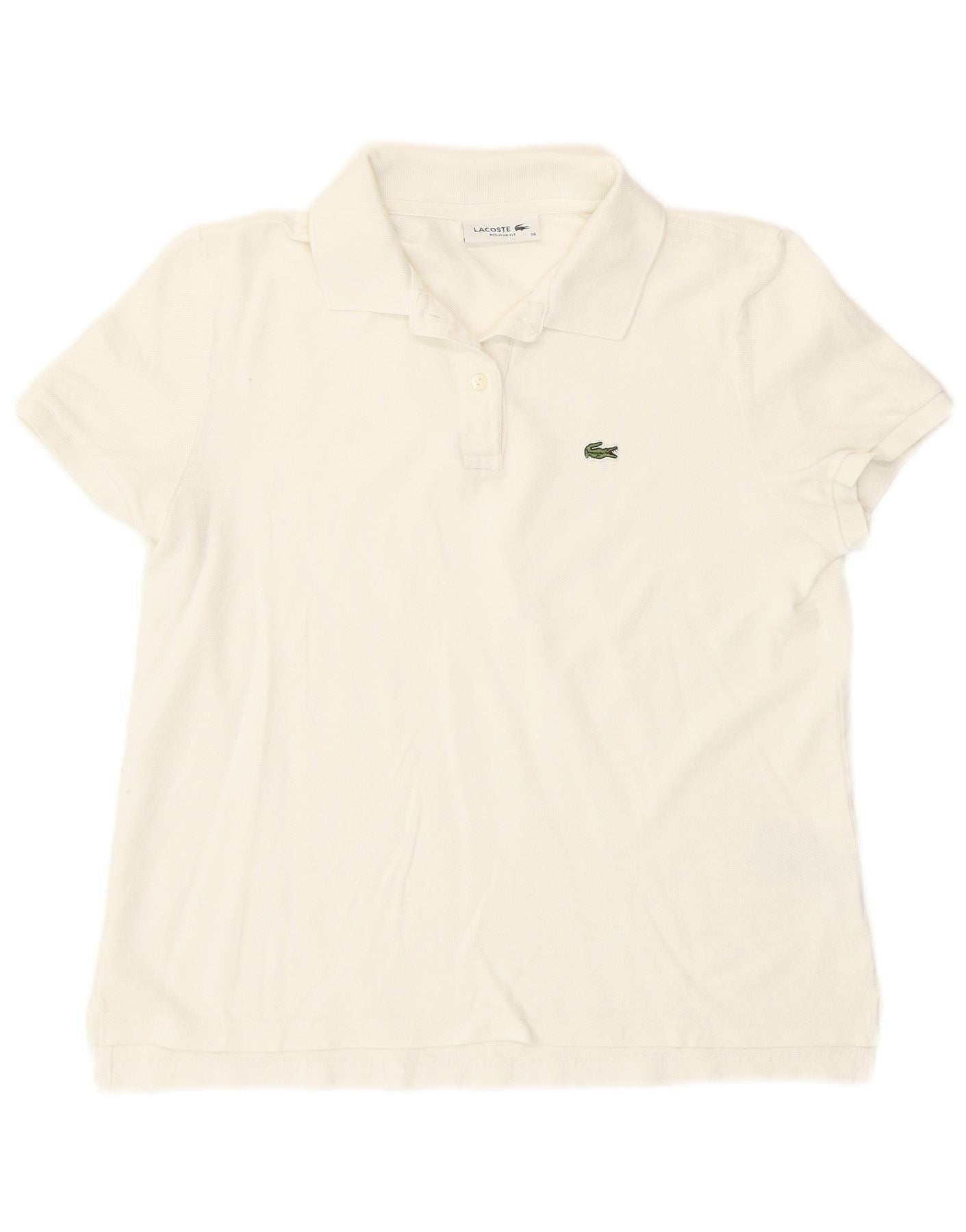 Lacoste Damen-Poloshirt mit normaler Passform, Größe 38, mittelweiße Baumwolle